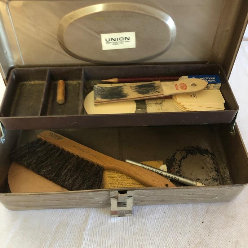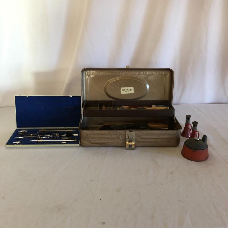 For all those jobs that require precision this is the lot you need. Lot includes Gramercy drafting set in case, metal tool box, slide rule, angle ruler, drafting pencil sharpener and more.