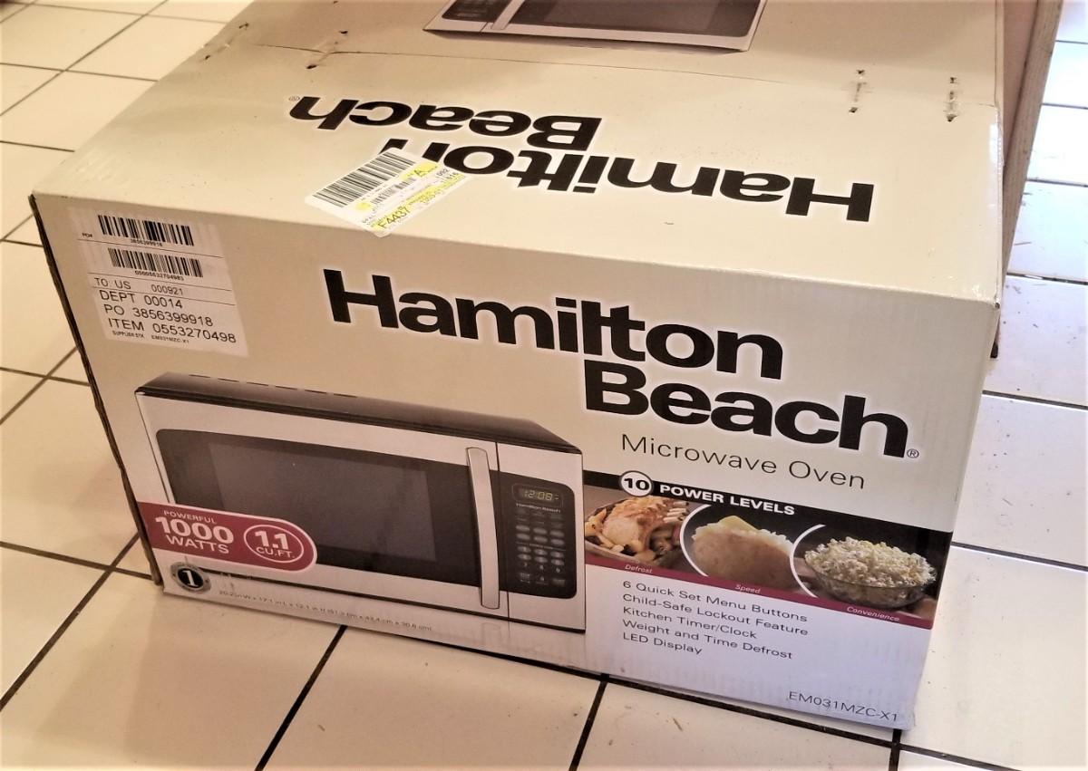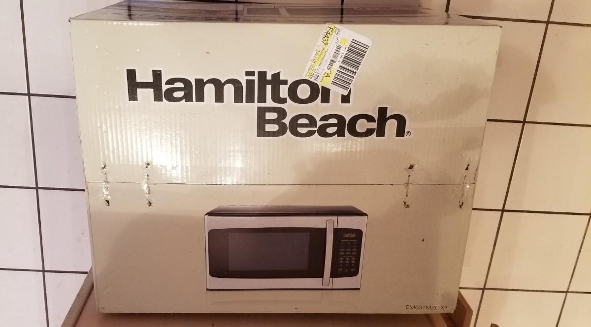 New - never removed from box. Hamilton Beach 1000 watt stainless microwave. 11 cubic feet - 10 power levels.