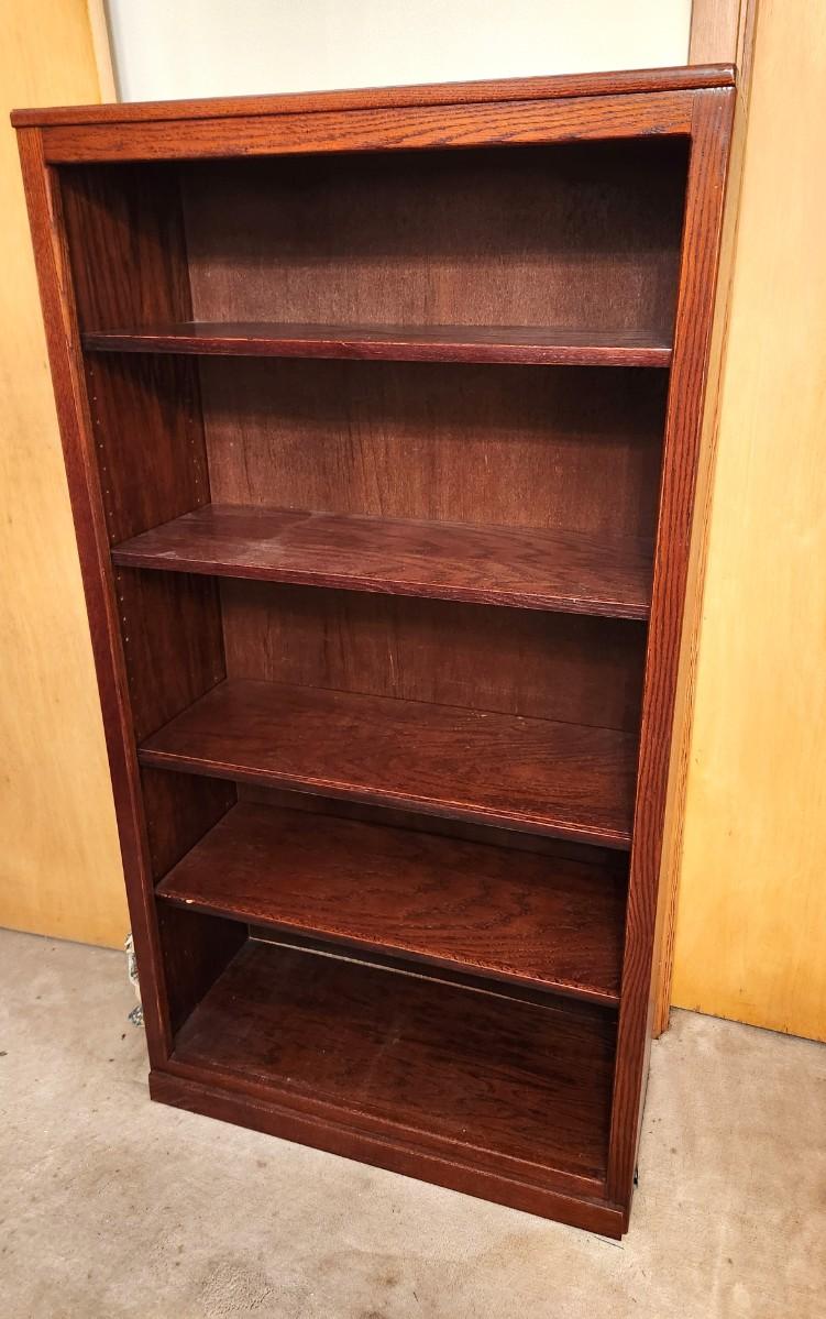 Solid Wood bookcase, 5 shelves - adjustable - 60" tall, 32" across, 13" deep.
