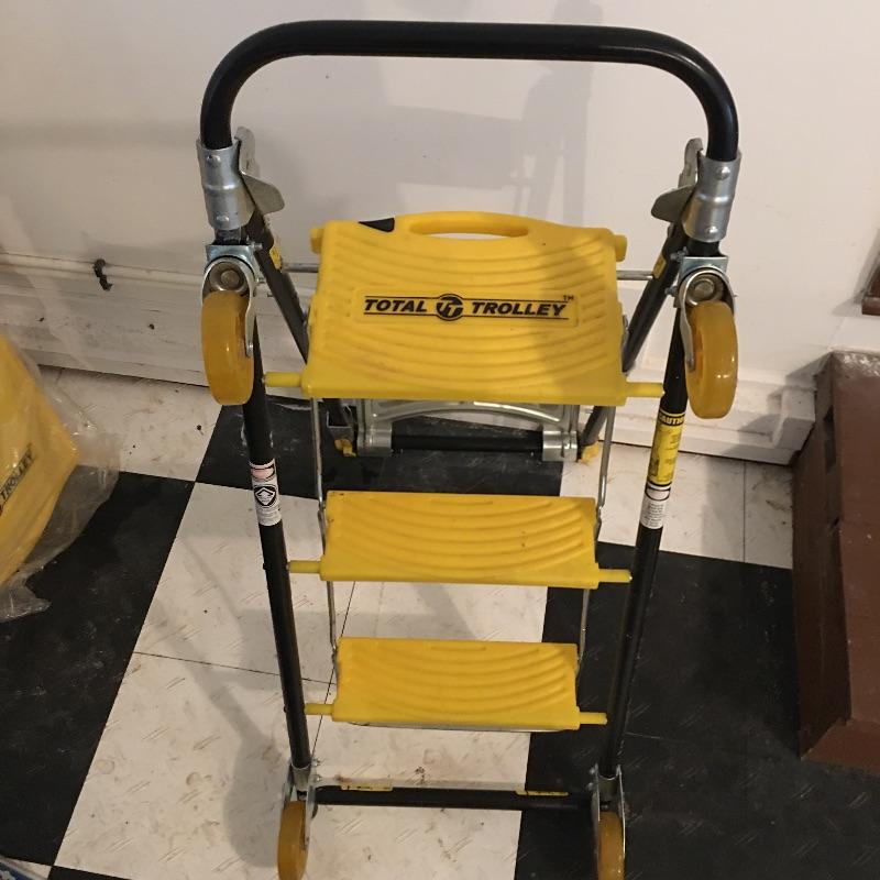 This Total Trolley is a Ladder, furniture dolly, four wheel cart and hand truck all in one to help with your moving needs. Also includes