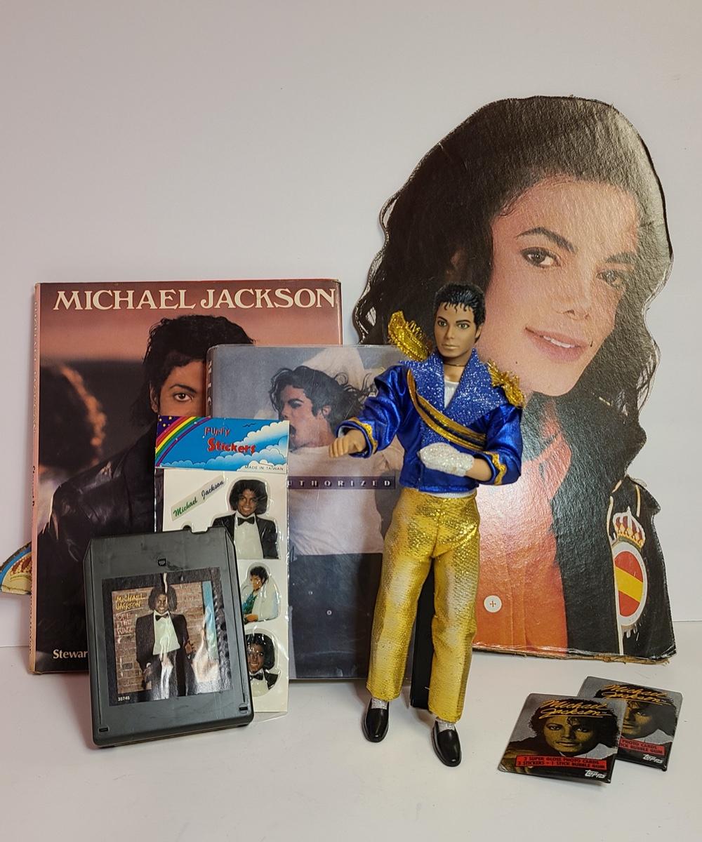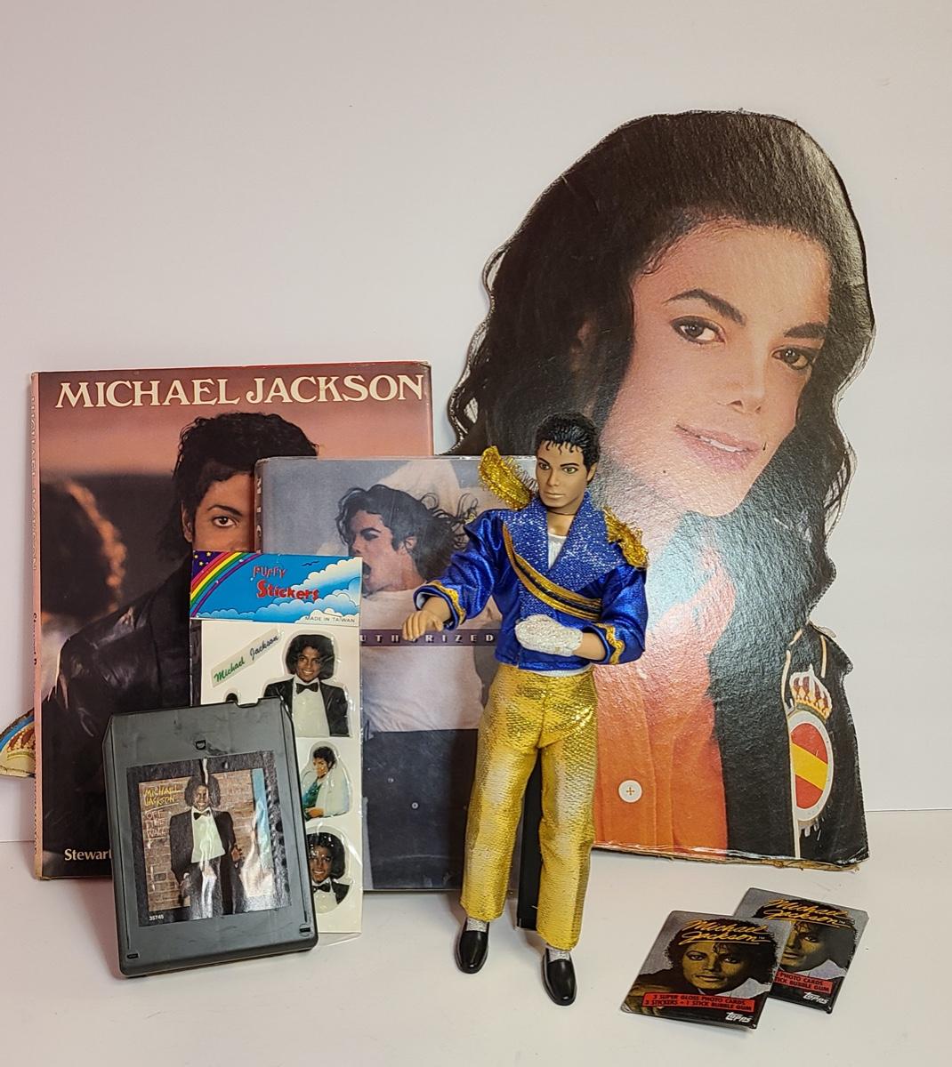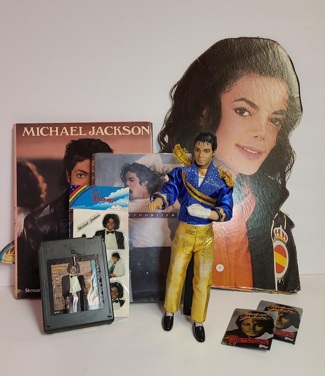 Lot 294: Vintage Michael Jackson Doll, New Stickers, Full Size Cut-Outs, and More