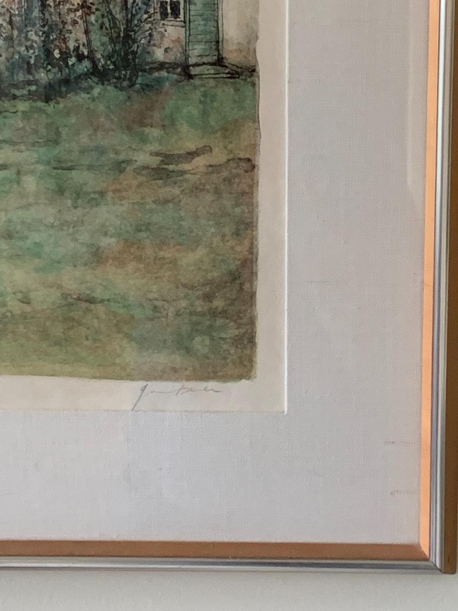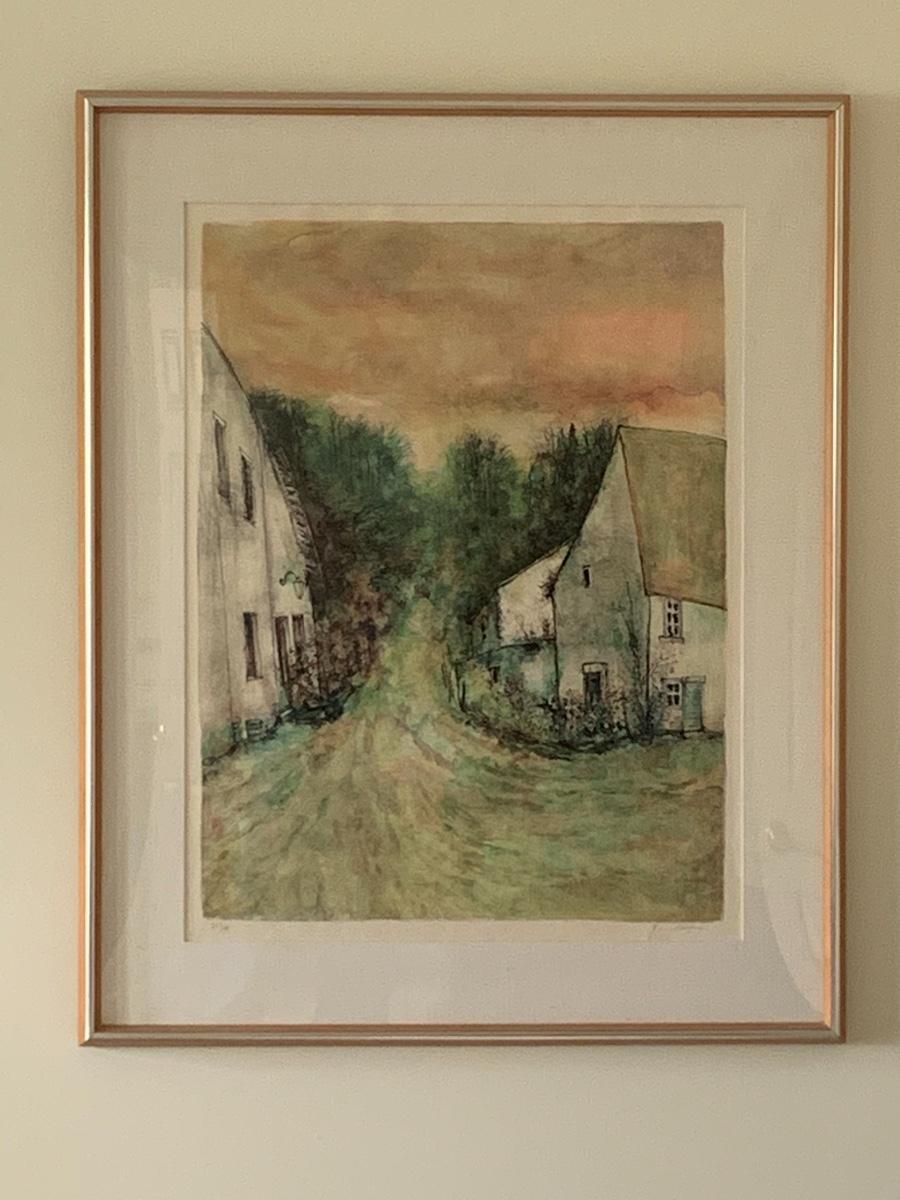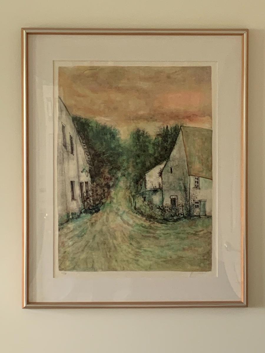 Lithograph of a street view in this 26 x 32 framed and matted art piece..Please see all pictures as they are the best representation of the items. The pictures show condition, measurements if taken, and what is included in the lot. Due to the large amount that we photograph and the time frame, we are not always able to take measurements. All items unless noted, are pre-owned and have been used. If you purchased furniture, you must bring help. We do not allow one person to carry large furniture out on their own. Bring help, tools and a truck for the safety of our client’s homes, and your personal safety. Company policy. Thank you.