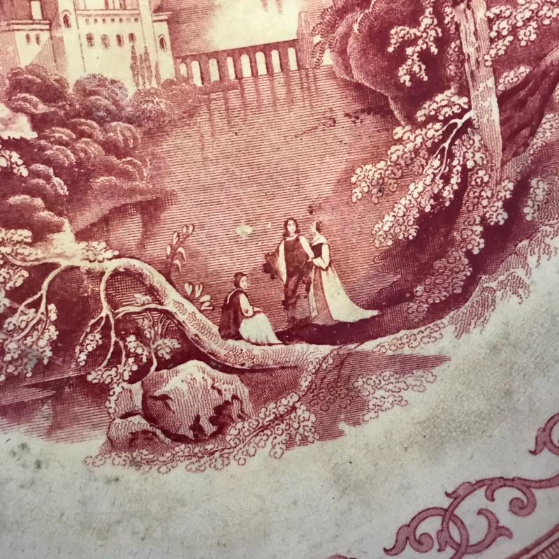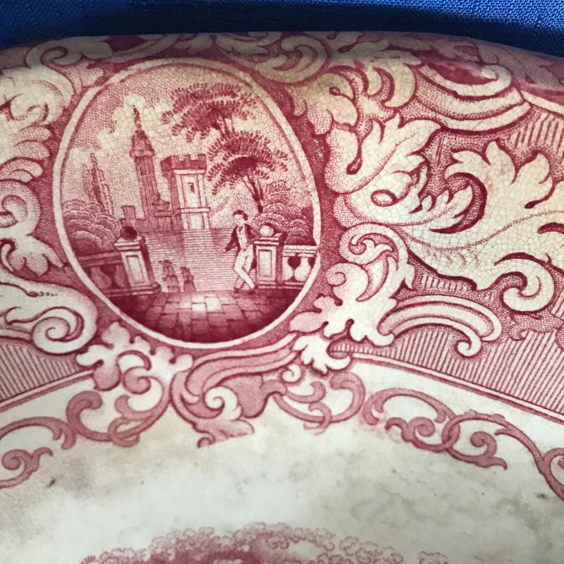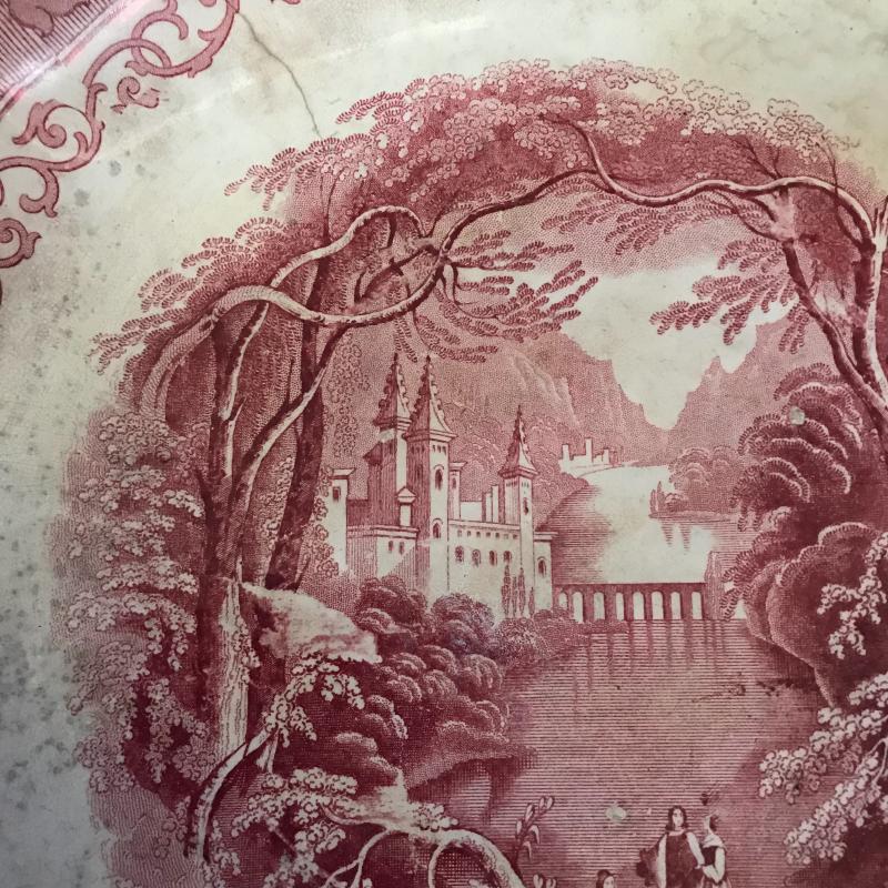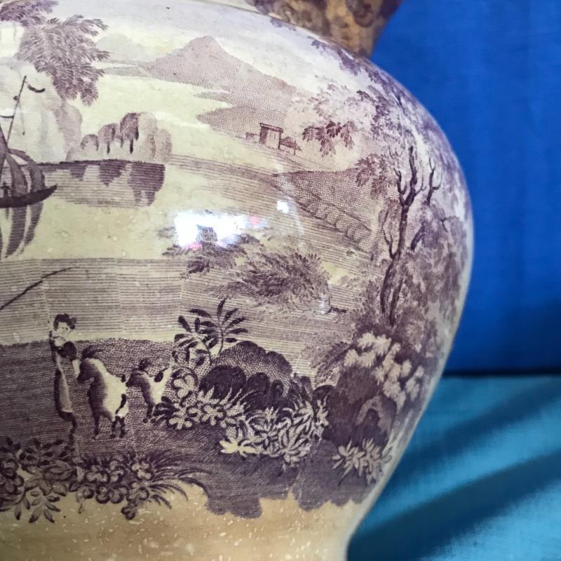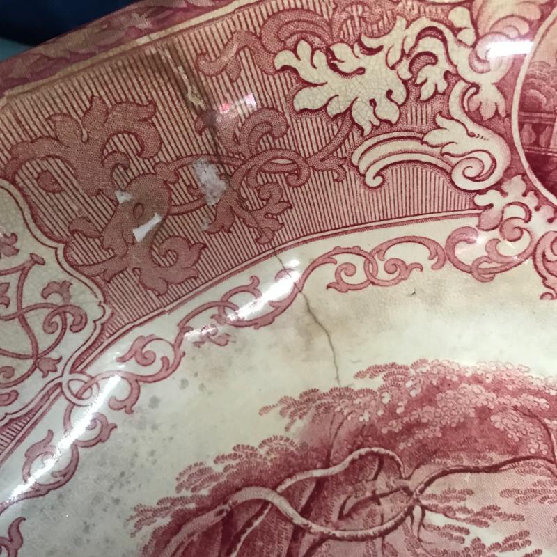 Lot includes two pieces of Transfer Ware from the 1800s. One has purplish print, and the other, pinkish. Bowl is approx. 14” in diameter. Pitcher is approx. 9” tall. Shipping or Local pickup in Maggie Valley, NC.