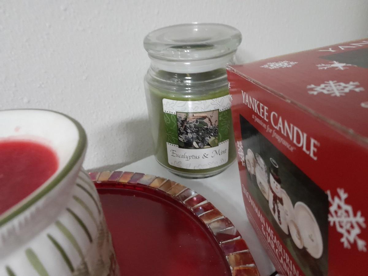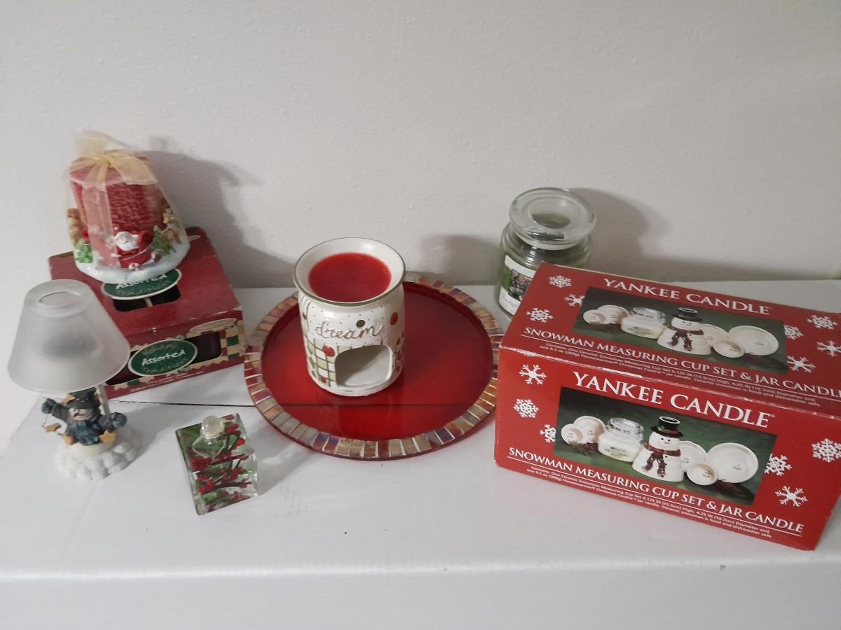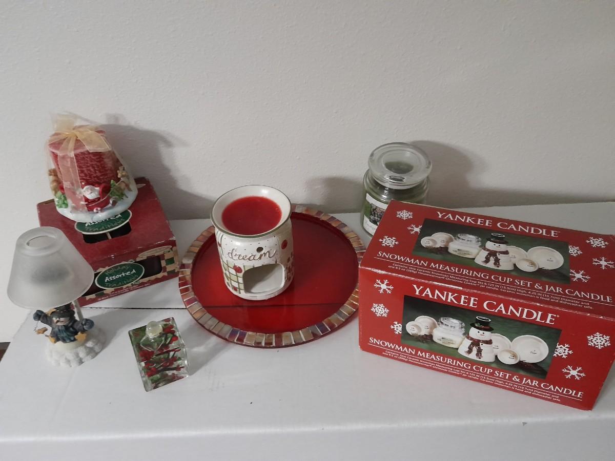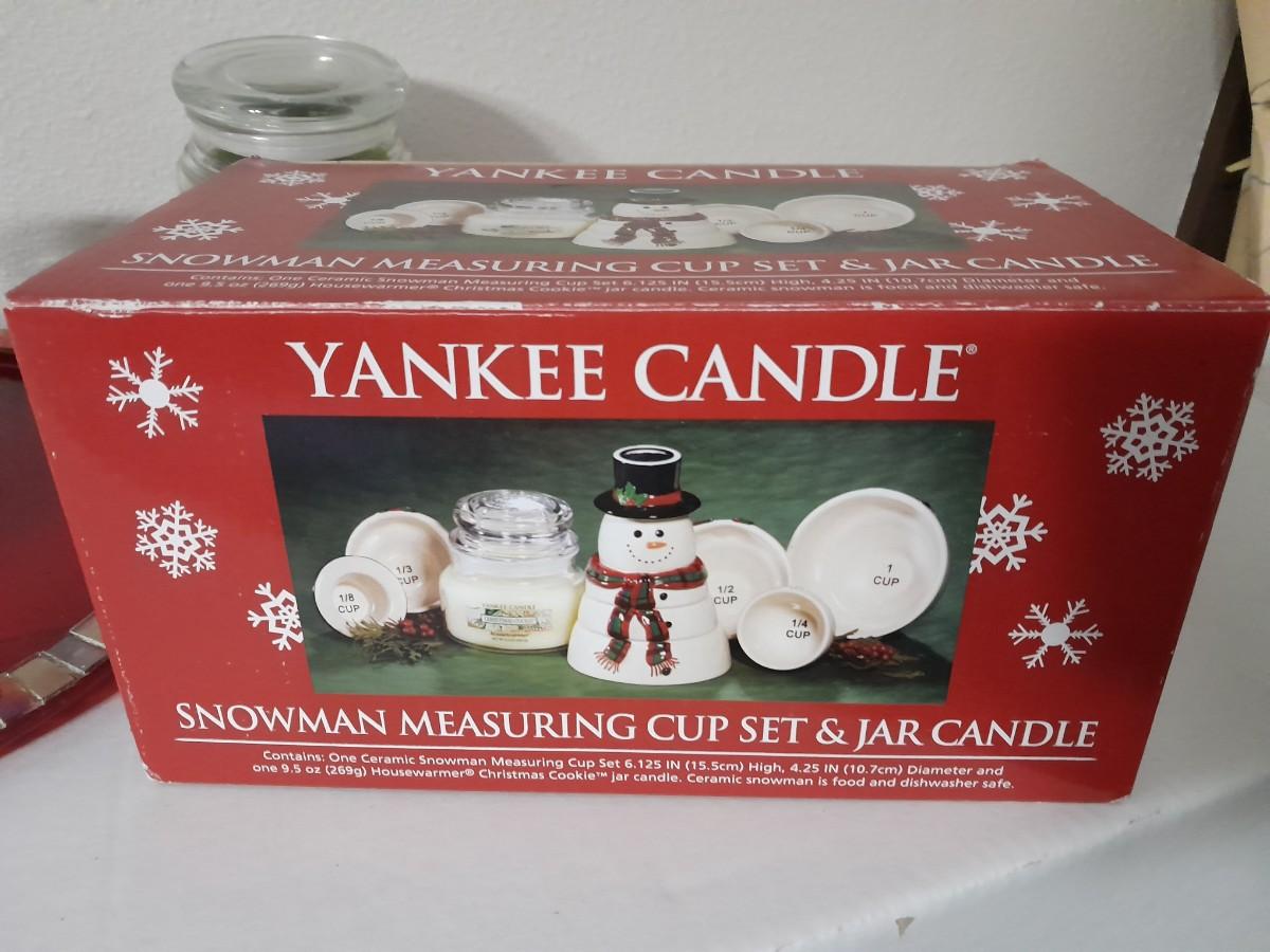 YANKEE CANDLE SNOWMAN MEASURING SET AND JAR, SNOWMAN TEA CANDLE LAMP, TEA CANDLES, INSCENT CANDLE BURNER, JAR CANDLE AND MORE