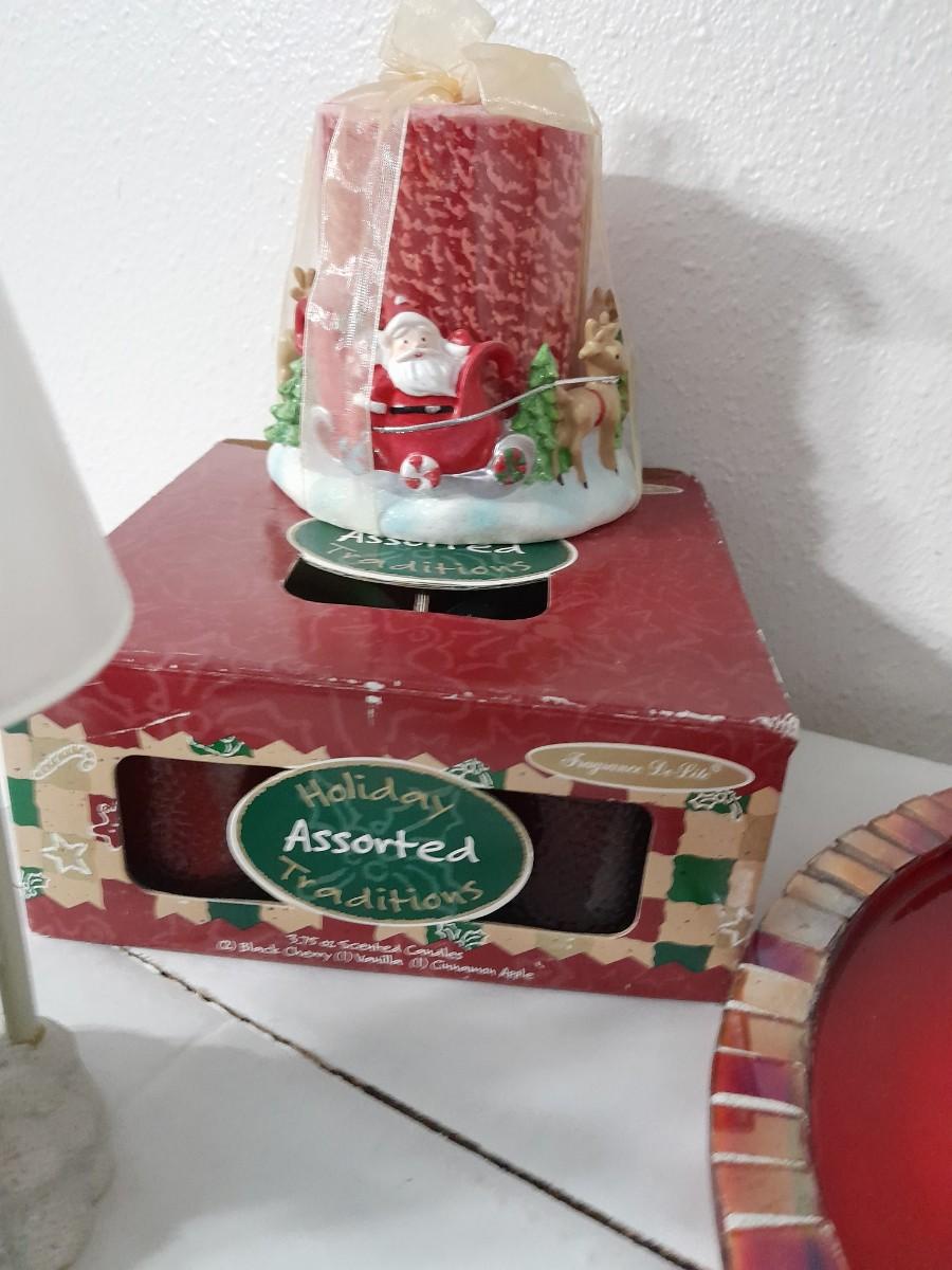 LOT 295 CHRISTMAS YANKEE CANDLE MEASURING SET, AND CANDLES