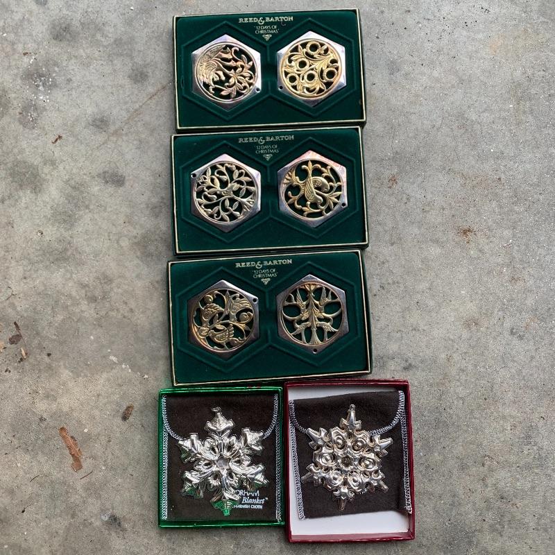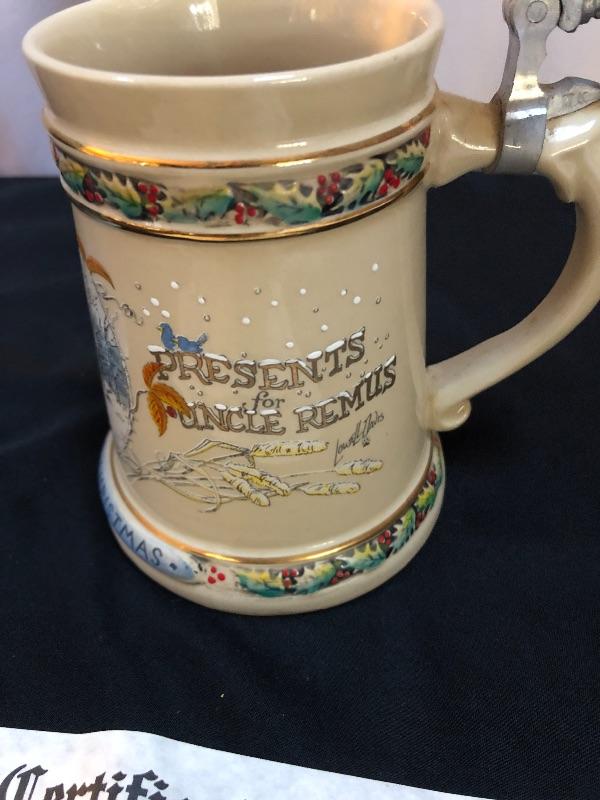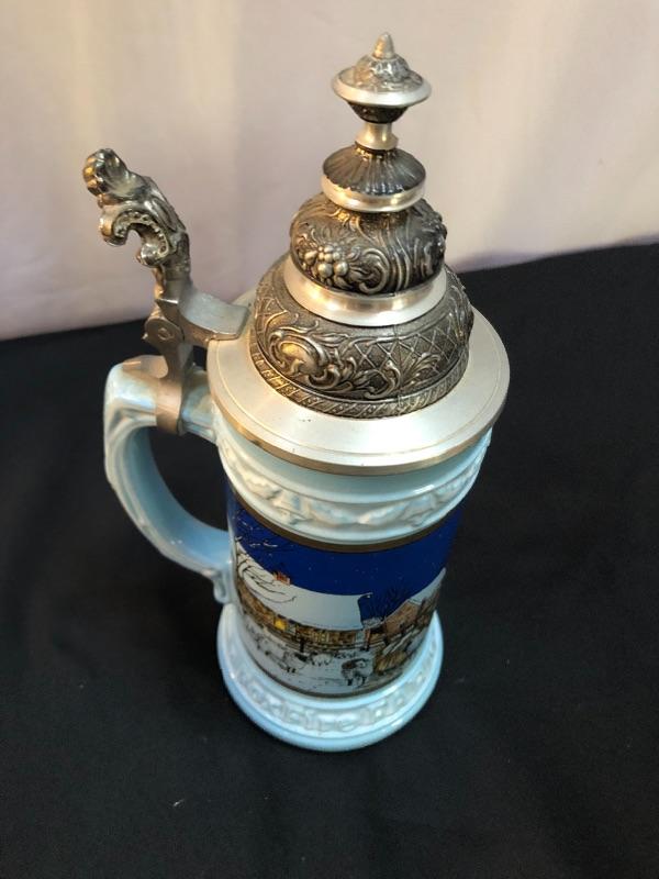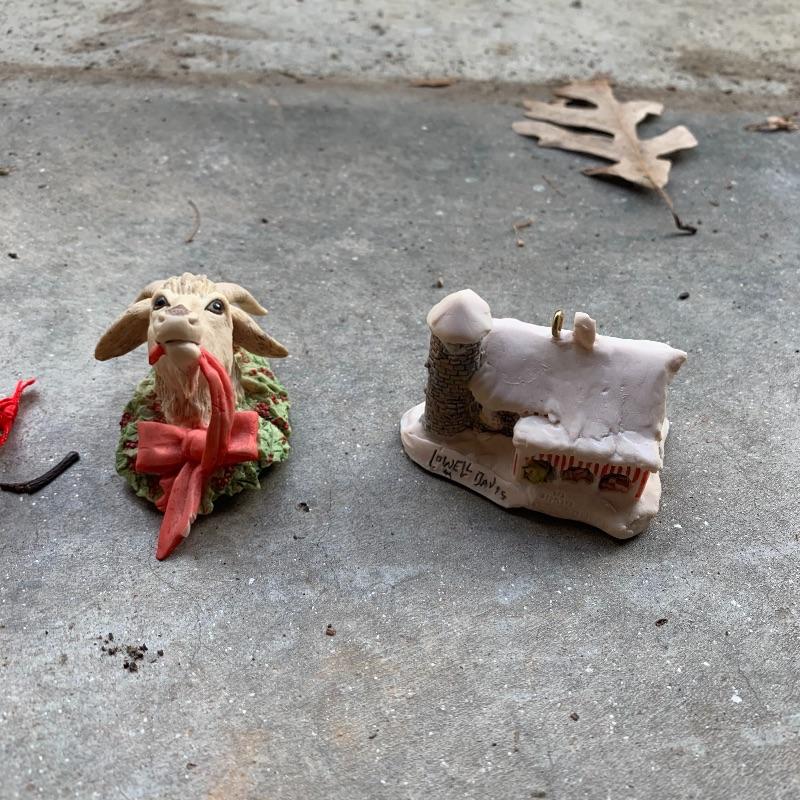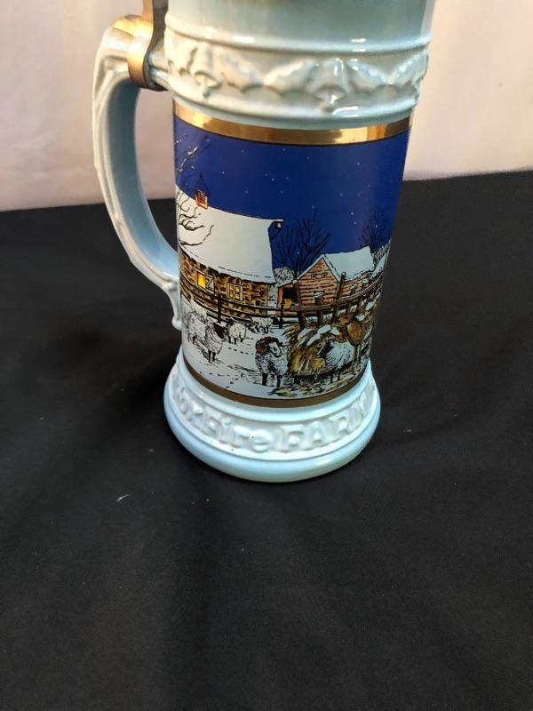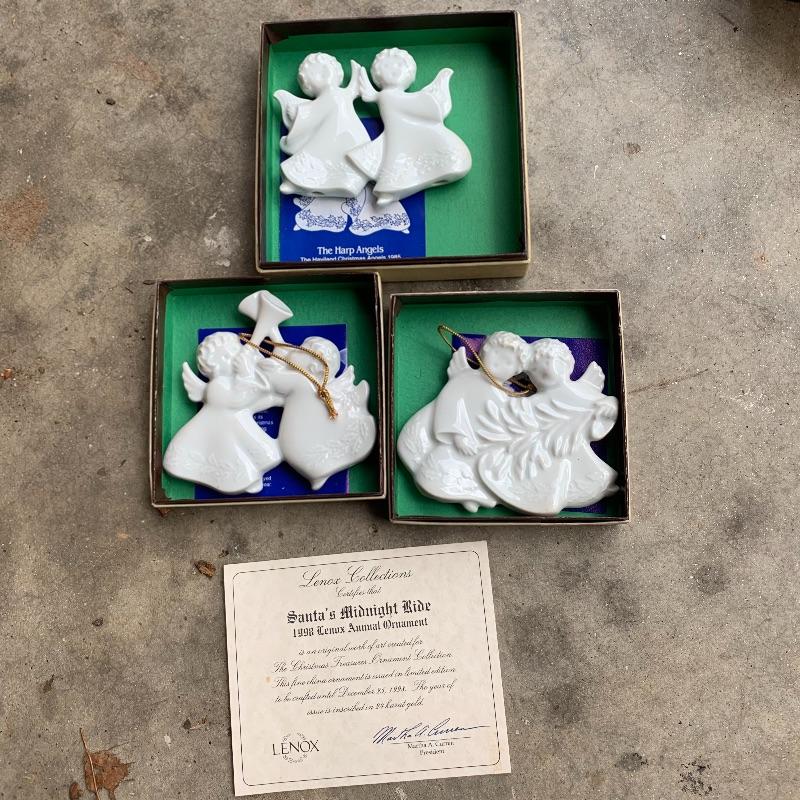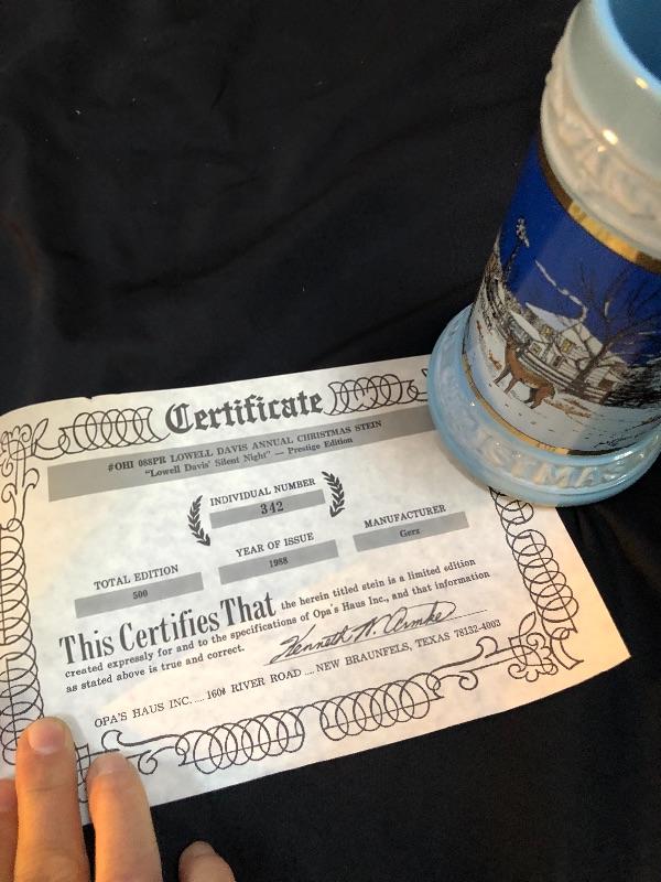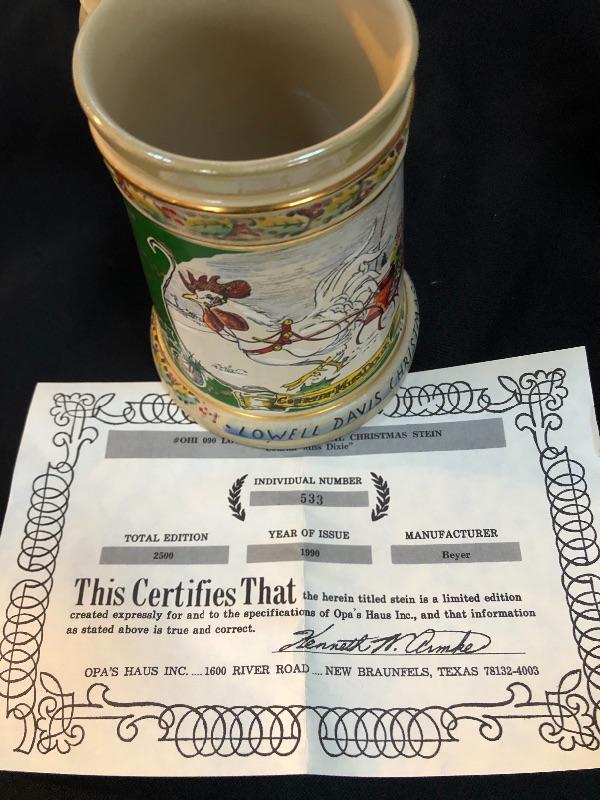 This lot includes a variety of nicer Christmas decor including three Lowell Davis Christmas steins, seven hanging stained glass decorations, three Lenox ceramics ornaments, three Landro ornaments, Lowell Davis ornaments, and more. The blue Stein measures 10” high with the other two measuring approximately 6” high. One of the Laurel Davis ornaments has a piece broken off (see picture). Local pick up only.
