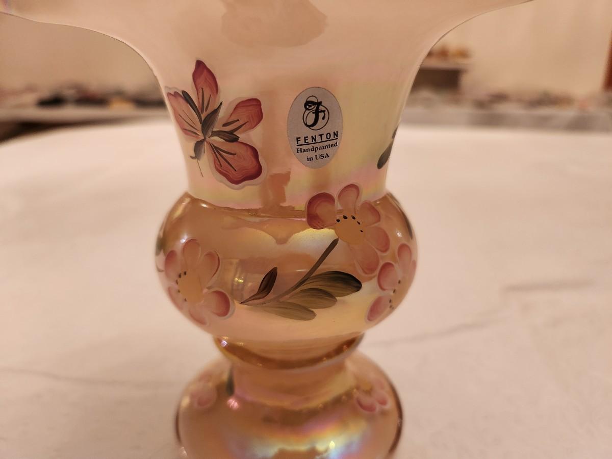 Lot #295 Fenton Vase with Iridescent Crest and Sunset Overlay