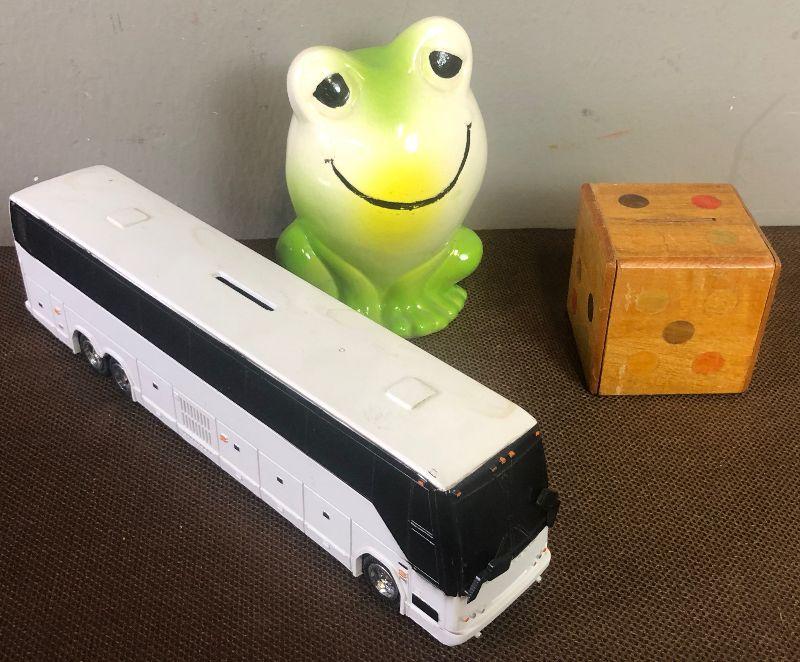 Lot # 295 Piggy Bank Lot - Frog, Dice, Tour Bus BANKS
