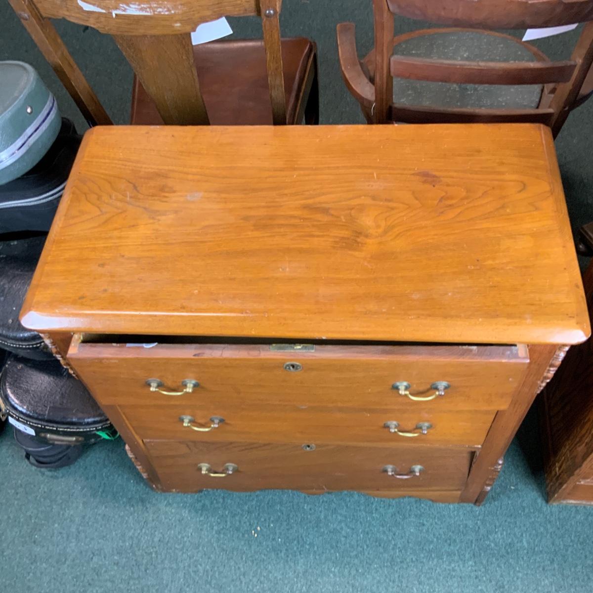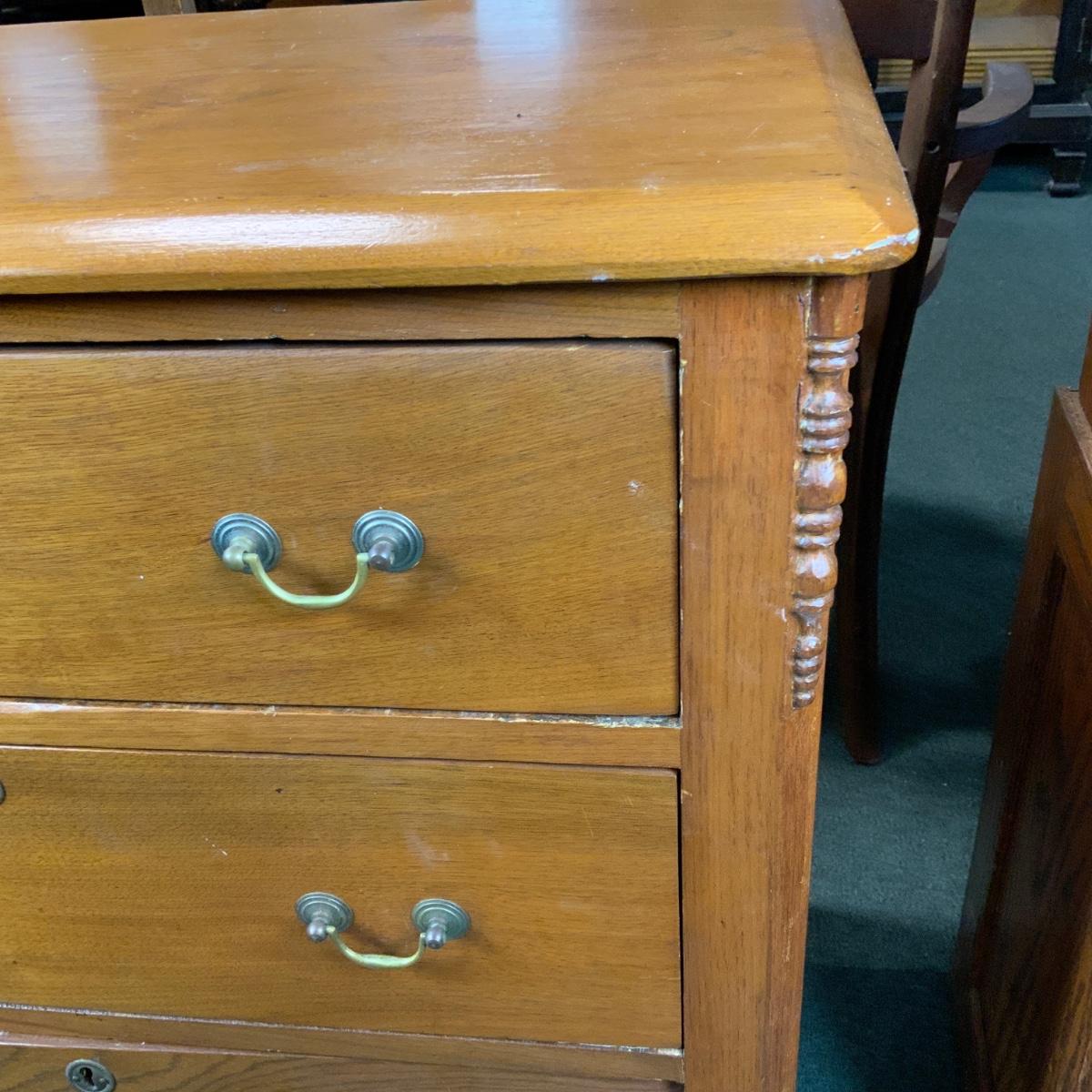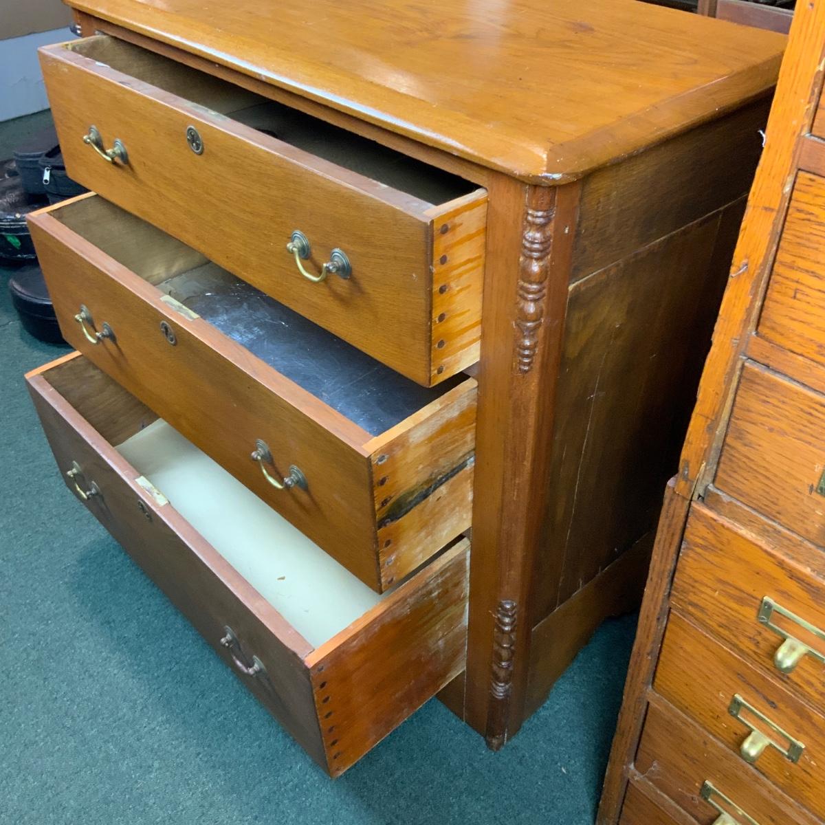 3-Drawer Walnut Commode. Needs minor restoration. //::\\ Please see photos for details and condition. No attempt has been made to hide any imperfections. All items listed in this auction are warehouse items, and need to be cleaned. A majority of the items need restoration as well. All items are sold AS IS and WITHOUT GUARANTEE. If you are uncertain about an item, DO NOT BID. Due to the nature of this online auction in-person inspection is HIGHLY recommended. All Sales are FINAL. Pick Up Times are FIRM. Please confirm with your own schedule that you can pick up in the scheduled times listed in the Terms and Conditions. Any questions please message the auctioneer. DO NOT Contact The Harp Gallery.