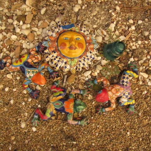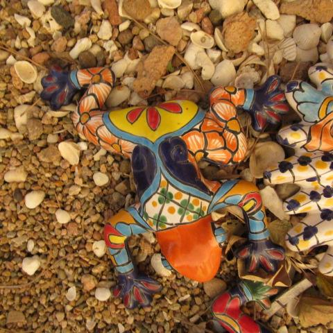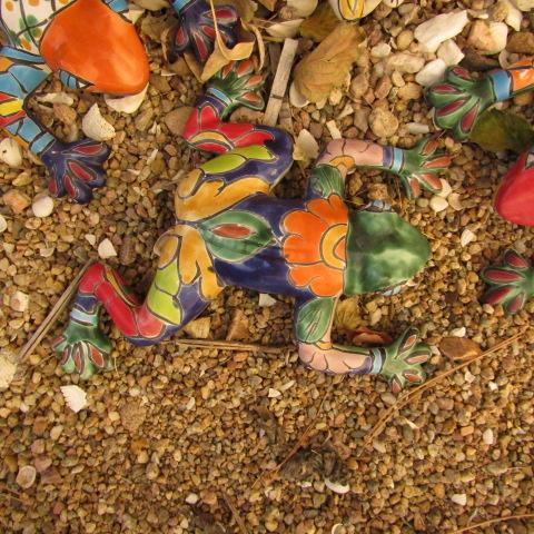 Y-42  COLORFUL TERRACOTTA SUN AND FROGS