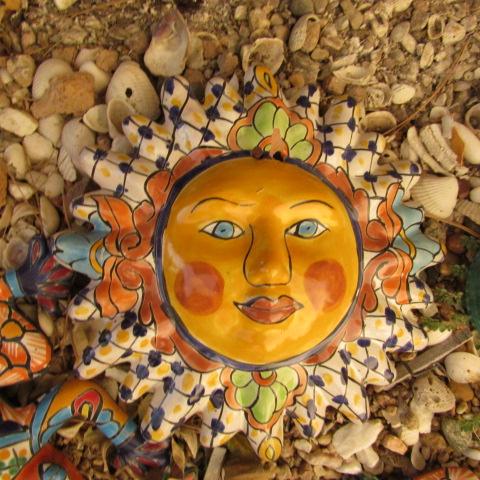 Y-42 COLORFUL TERRACOTTA SUN AND FROGS