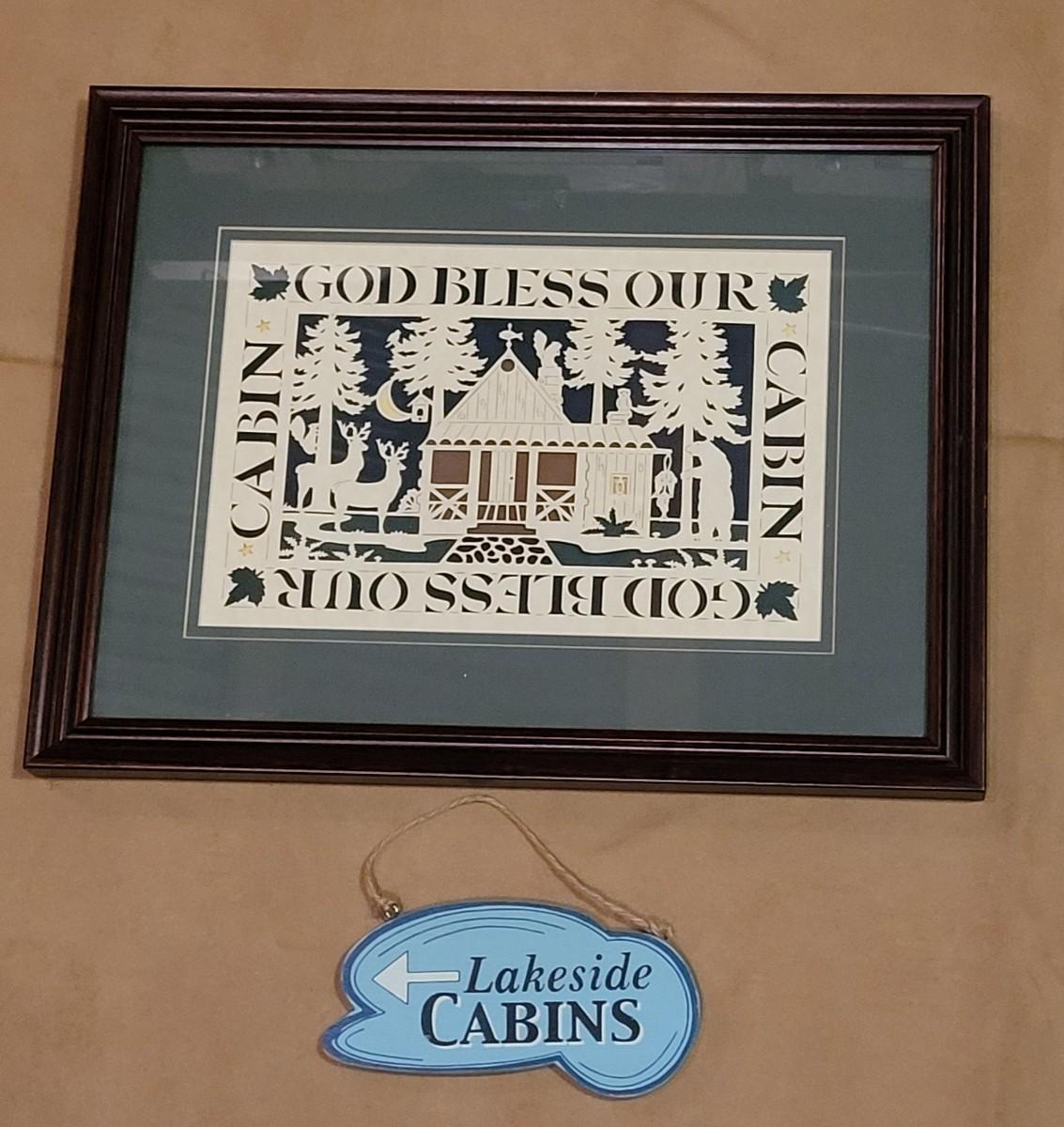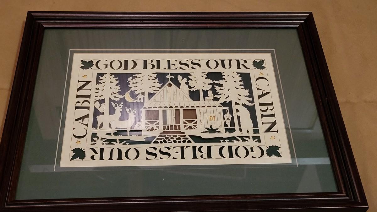 Lot 296: Cindy Jacob's Paper Cutting Cabin Art & Cabin Sign