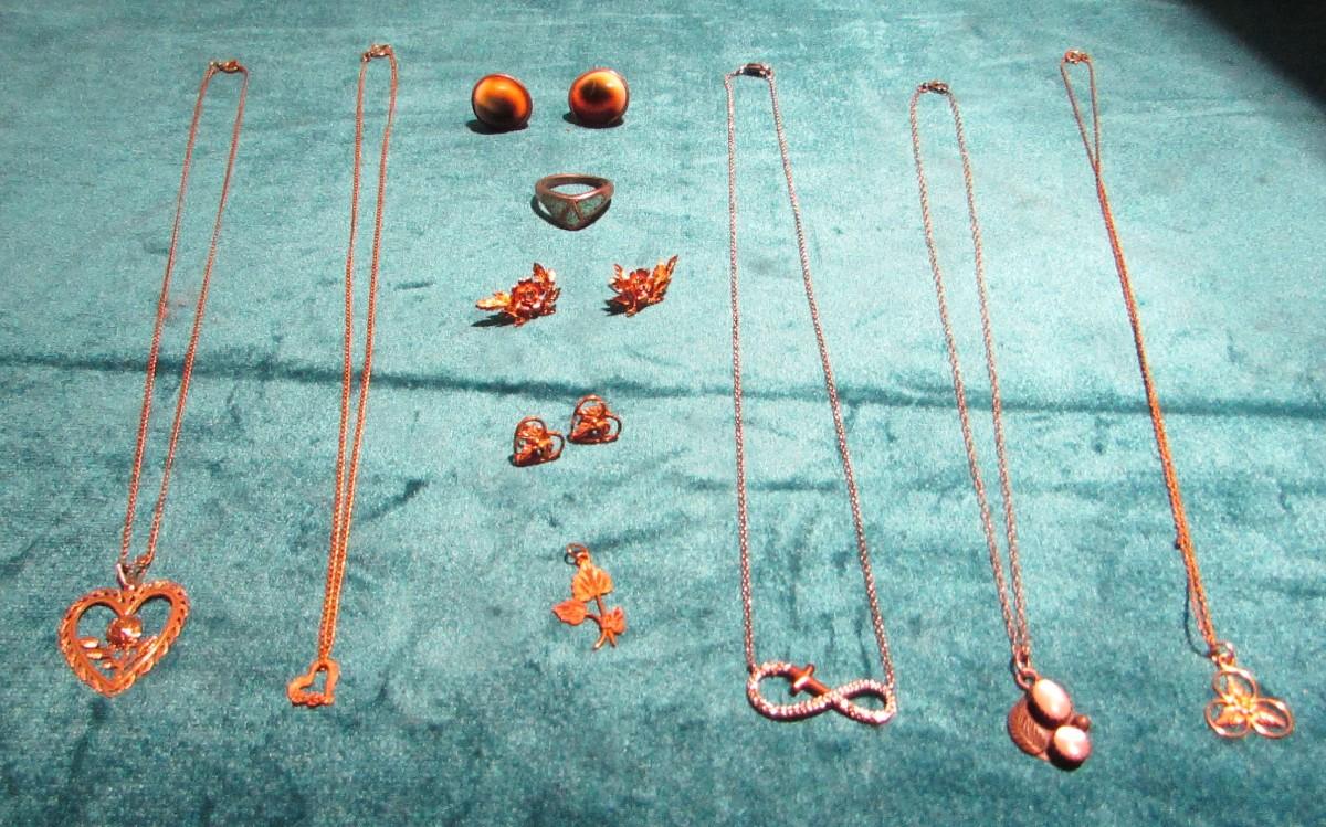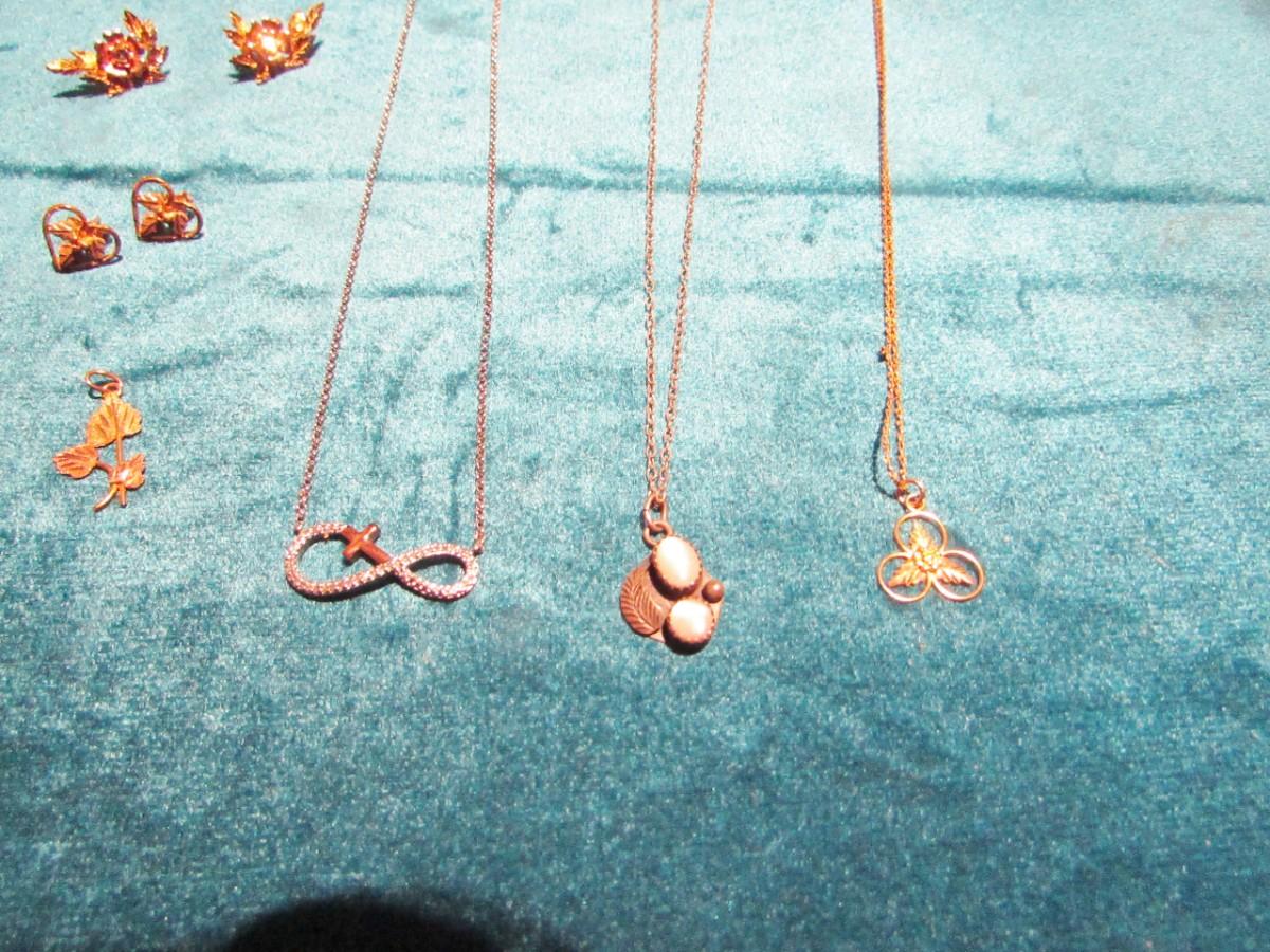 SOME OF THE PENDANTS AND EARRINGS ARE 10K GOLD AND WEIGH .054 TROY OZ