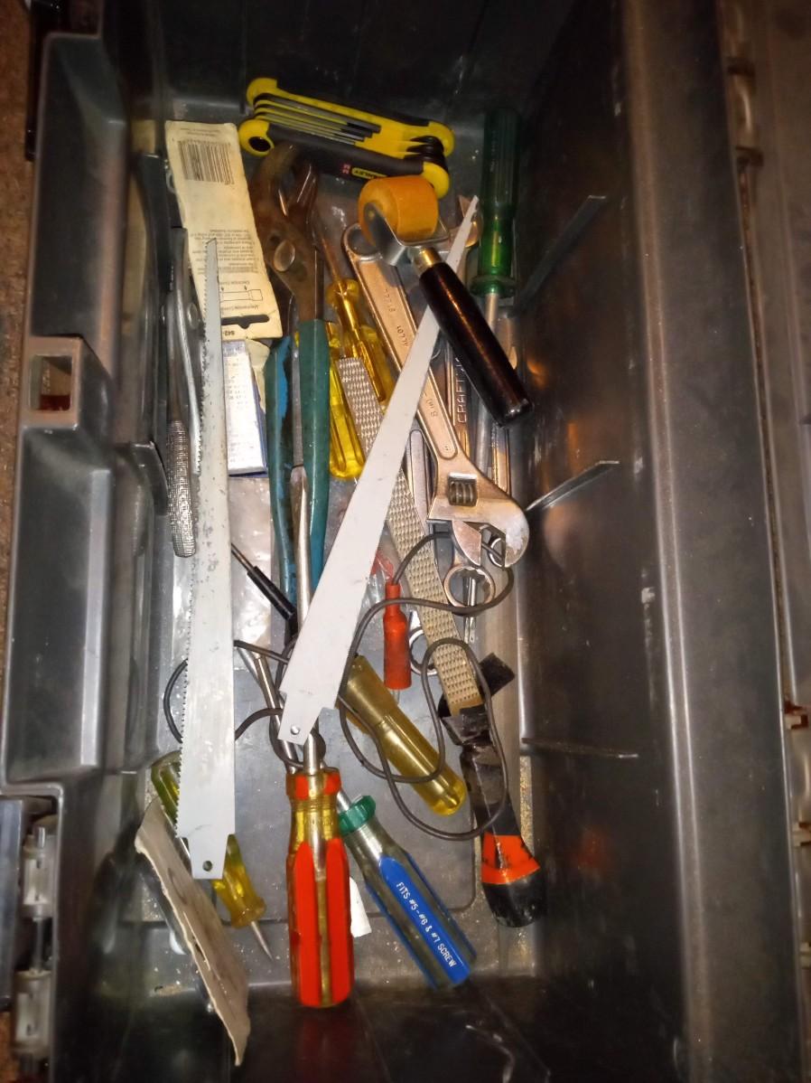 LOT 296 LARGE VARIETY OF HAND TOOLS AND TOOLBOX