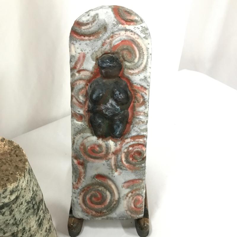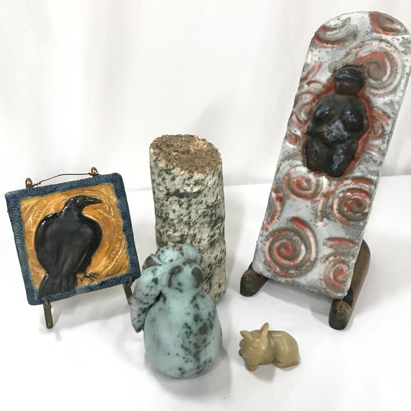 Pottery, stone and cement pieces. Tall Damaris sculpture is 10.5” l x 4”w. See photos for other details. Shipping or local pick up in Asheville