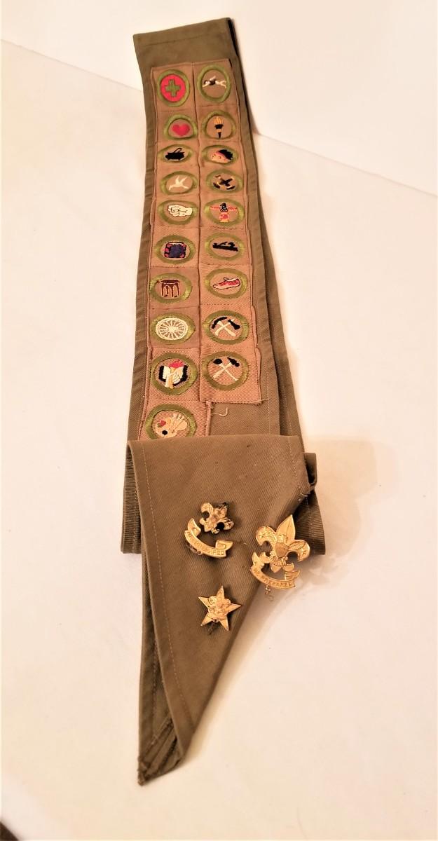 Lot #296  Vintage Boy Scout Badge Sash with Pins