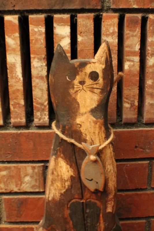LOT #297: Wood Cat Folk Art Sculpture by THE WOODEN HEN