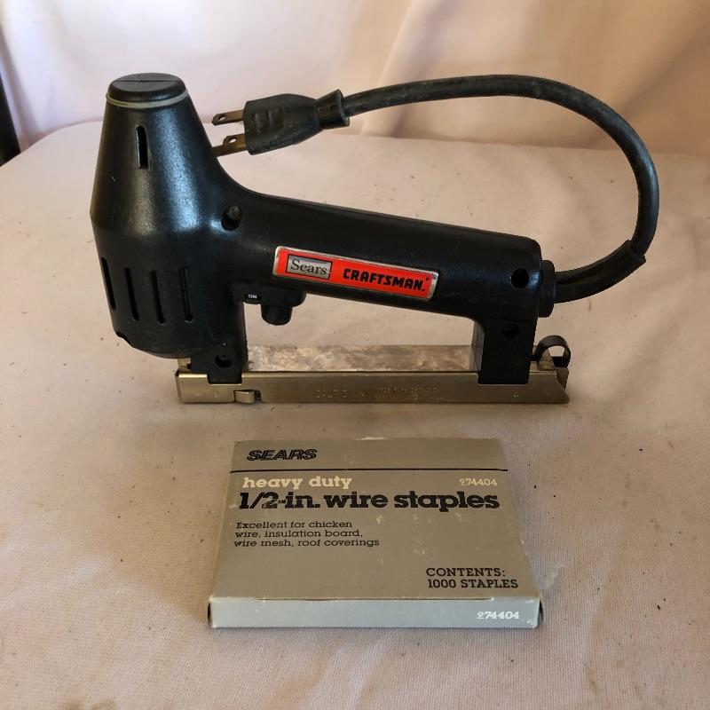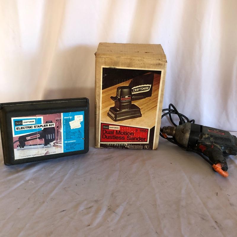 Get to work on the projects with this trio of Craftsman tools. Lot includes Dual motion sander model #1165, 3/8” drill and a electric stapler. All tools worked when tested.