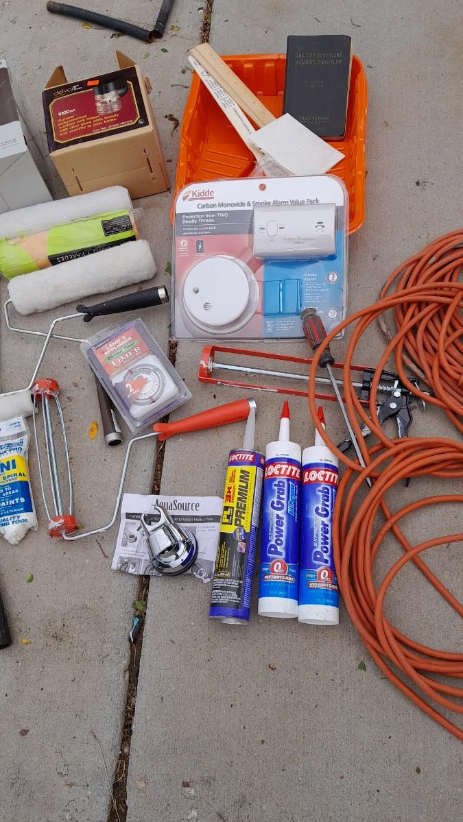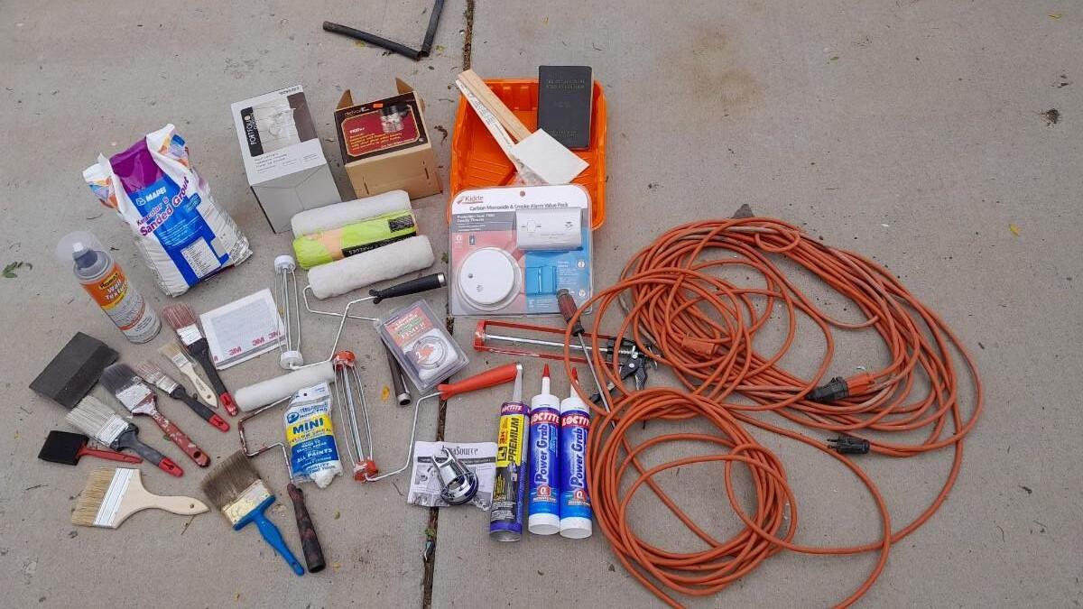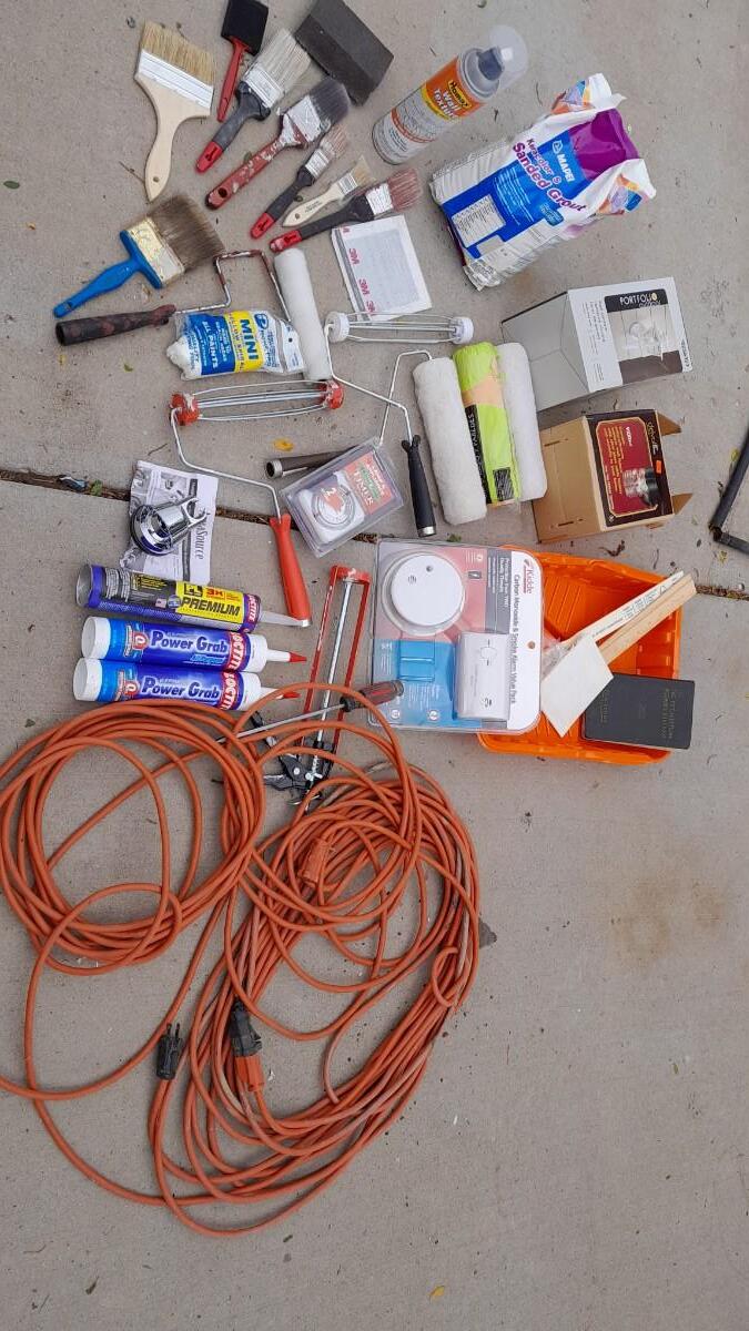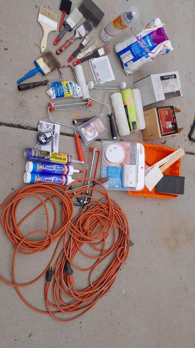HOME REPAIR ITEMS, MOSTLY PAINTING REPAIR, AND AN EXTENSION CORD