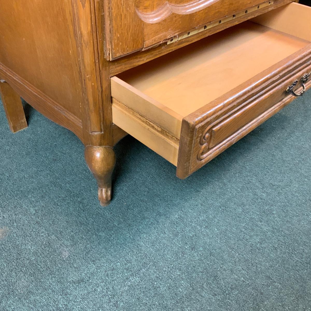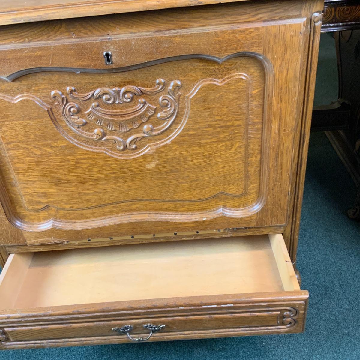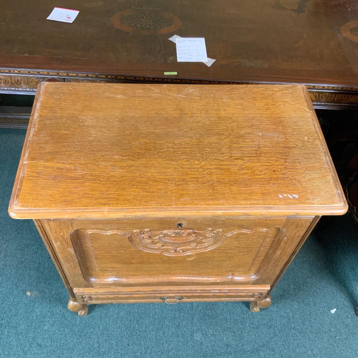 Oak Bar. Nice construction lots of storage. //::\\ Please see photos for details and condition. No attempt has been made to hide any imperfections. All items listed in this auction are warehouse items, and need to be cleaned. A majority of the items need restoration as well. All items are sold AS IS and WITHOUT GUARANTEE. If you are uncertain about an item, DO NOT BID. Due to the nature of this online auction in-person inspection is HIGHLY recommended. All Sales are FINAL. Pick Up Times are FIRM. Please confirm with your own schedule that you can pick up in the scheduled times listed in the Terms and Conditions. Any questions please message the auctioneer. DO NOT Contact The Harp Gallery.