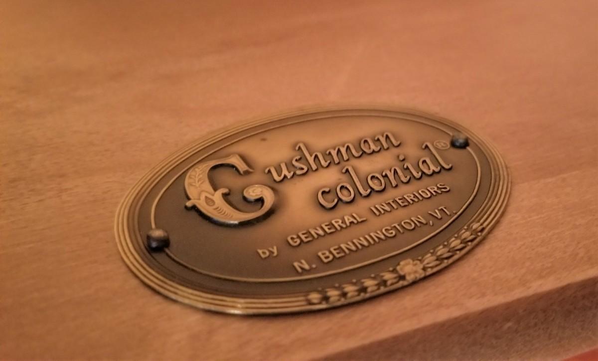 Great condition! Vintage mid-century colonial style Cushman Furniture Company chest of drawers, 7 drawers, 37.5" across, 54.5" tall, 20" deep. Brass pulls. A nice piece of furniture - solid wood.