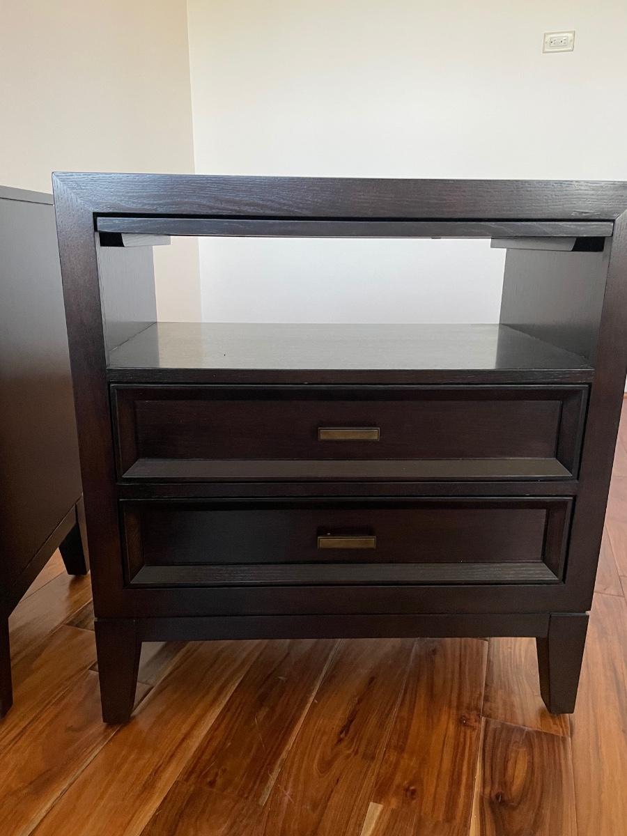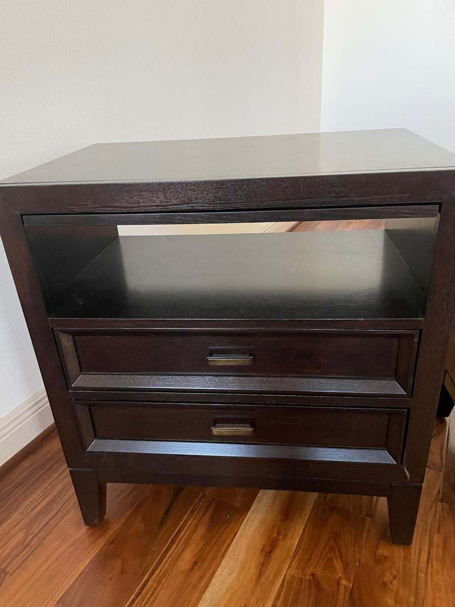 Dark espresso/walnut-tone wood with bronze-tone hardware.