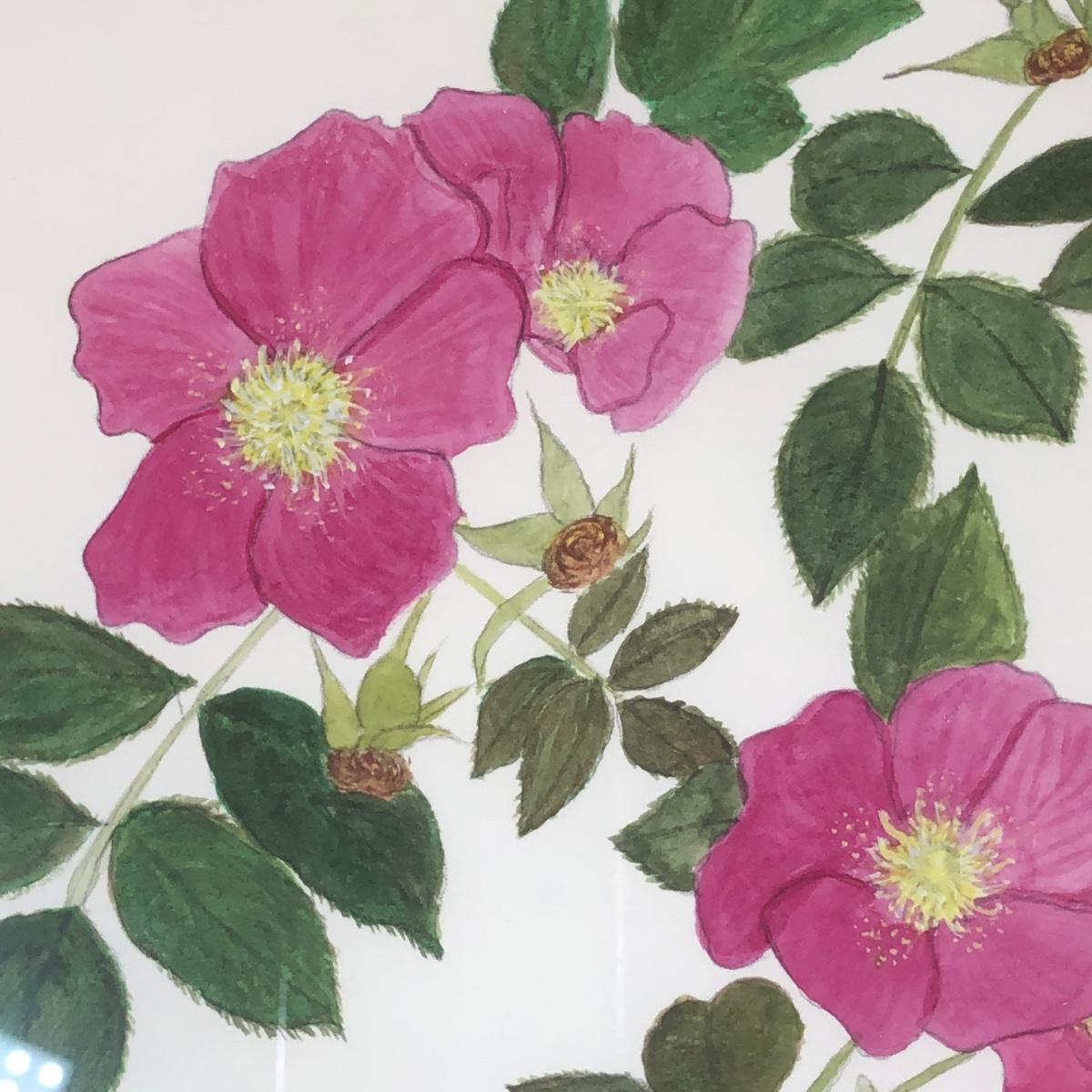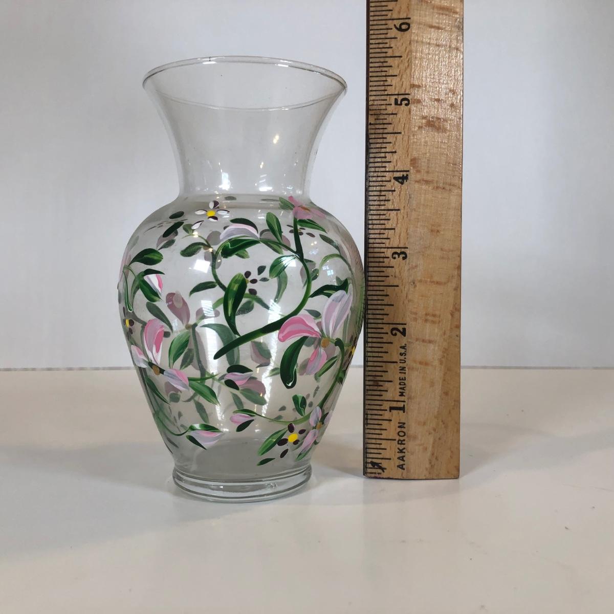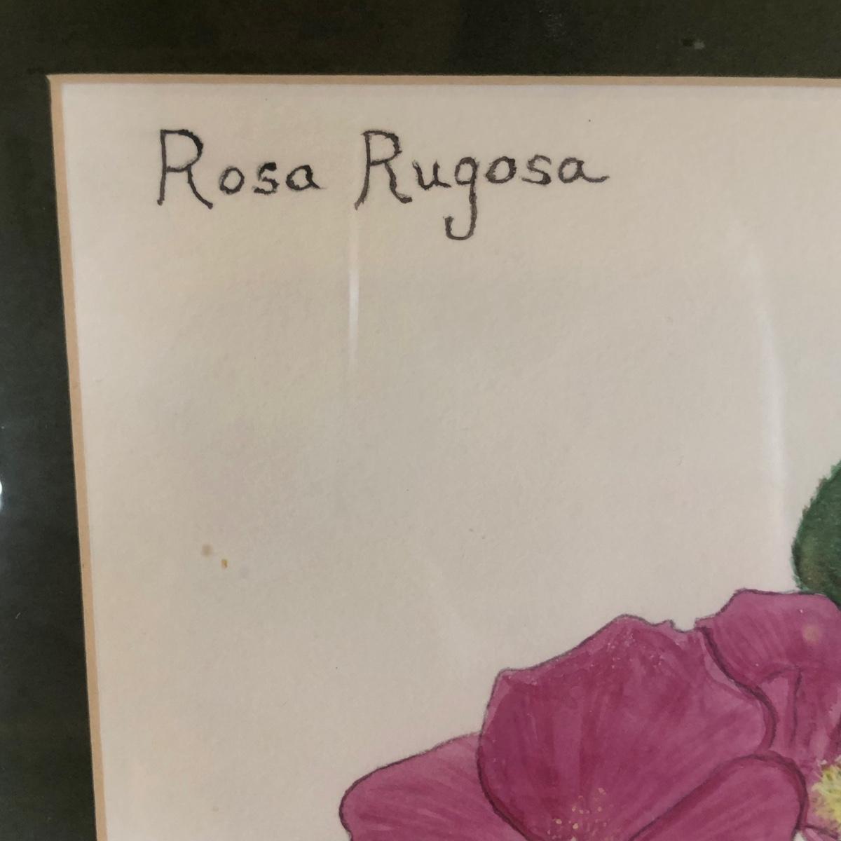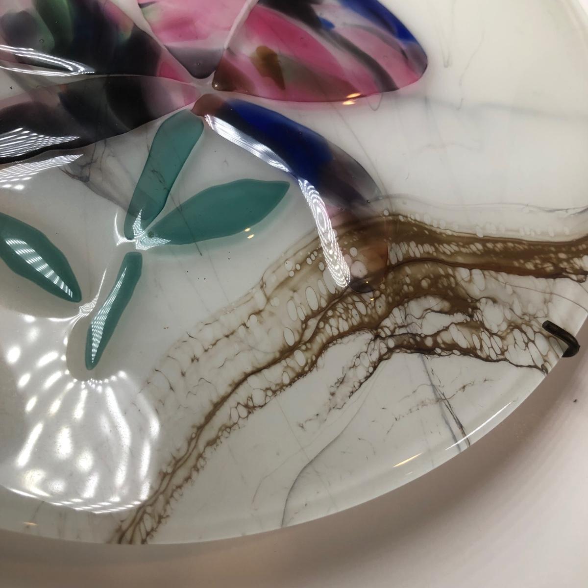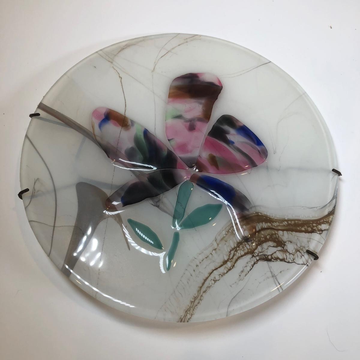 LOT 297F: Signed Lauren Montgomery "Rosa Rugosa" Artwork, Stained Art Glass Plate & Hand Painted Floral Bud Vase