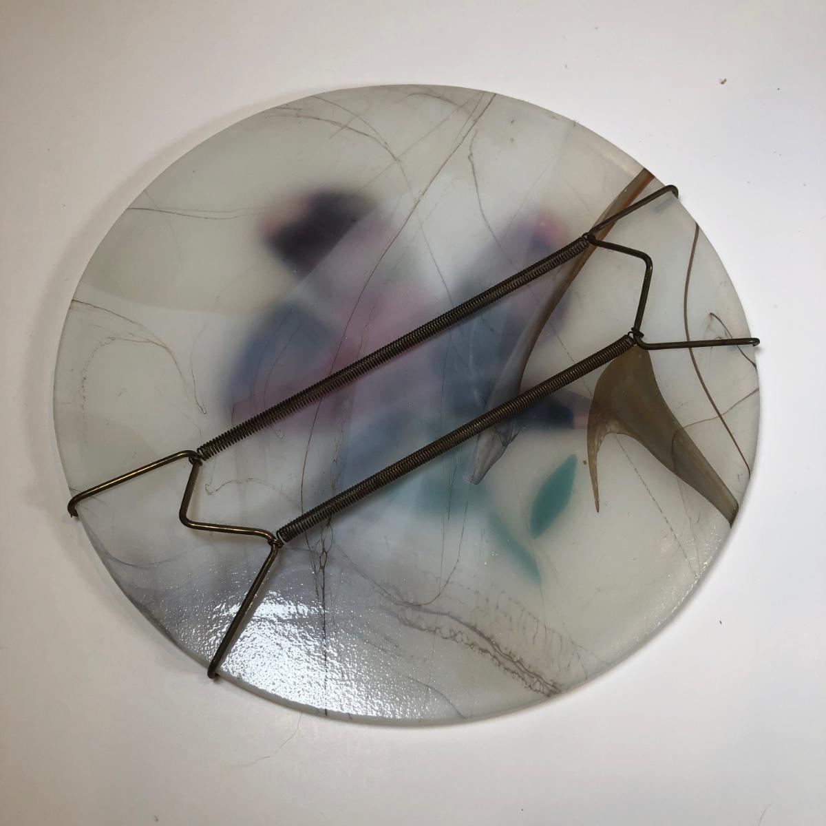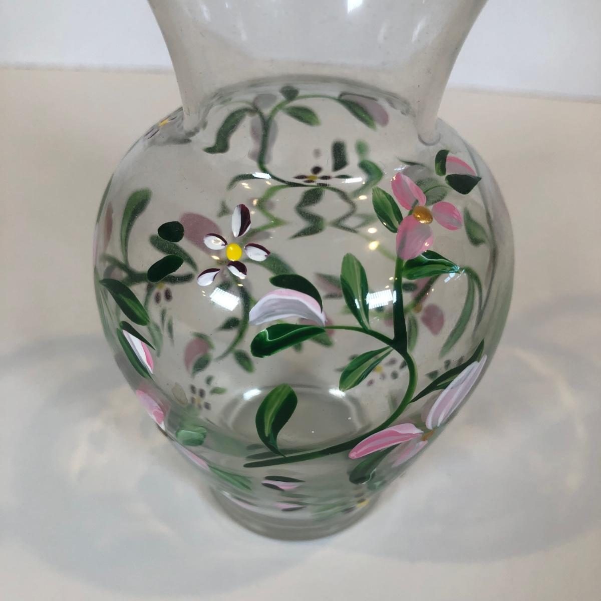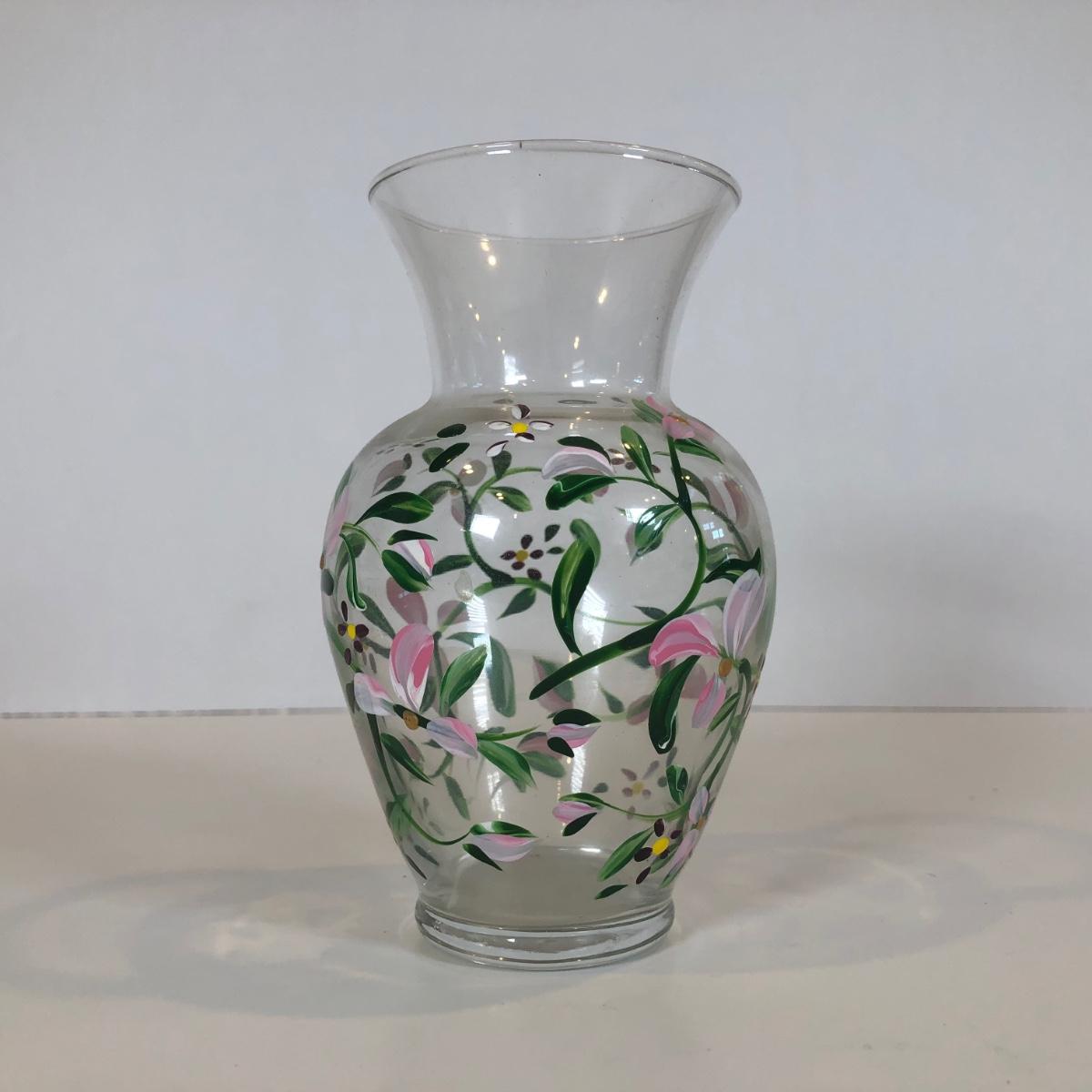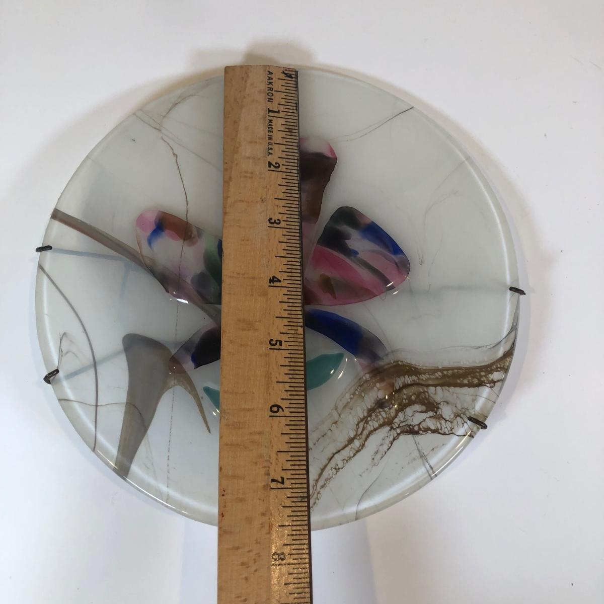 LOT 297F: Signed Lauren Montgomery "Rosa Rugosa" Artwork, Stained Art Glass Plate & Hand Painted Floral Bud Vase