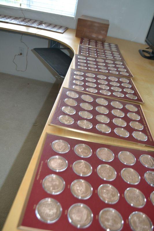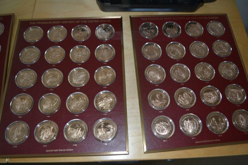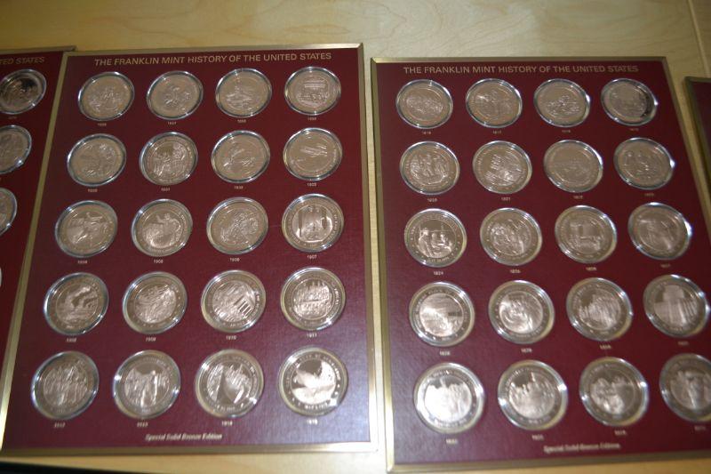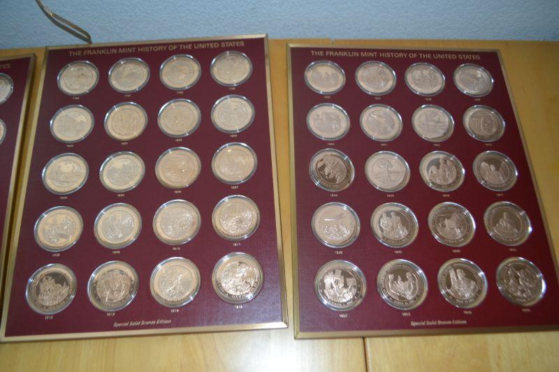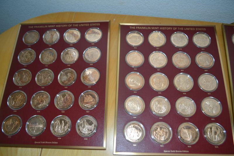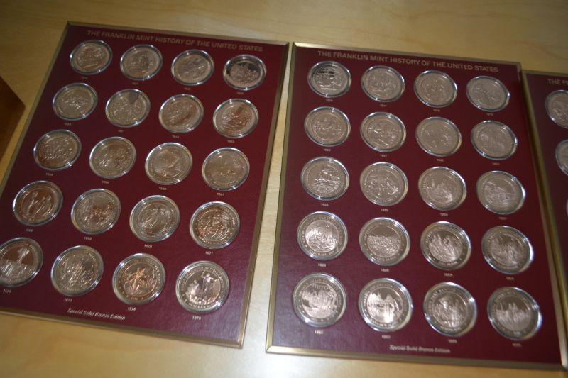 FRANKLIN MINT HISTORY OF THE UNITED STATES SOLID BRONZE COIN SET IN WOOD CASE