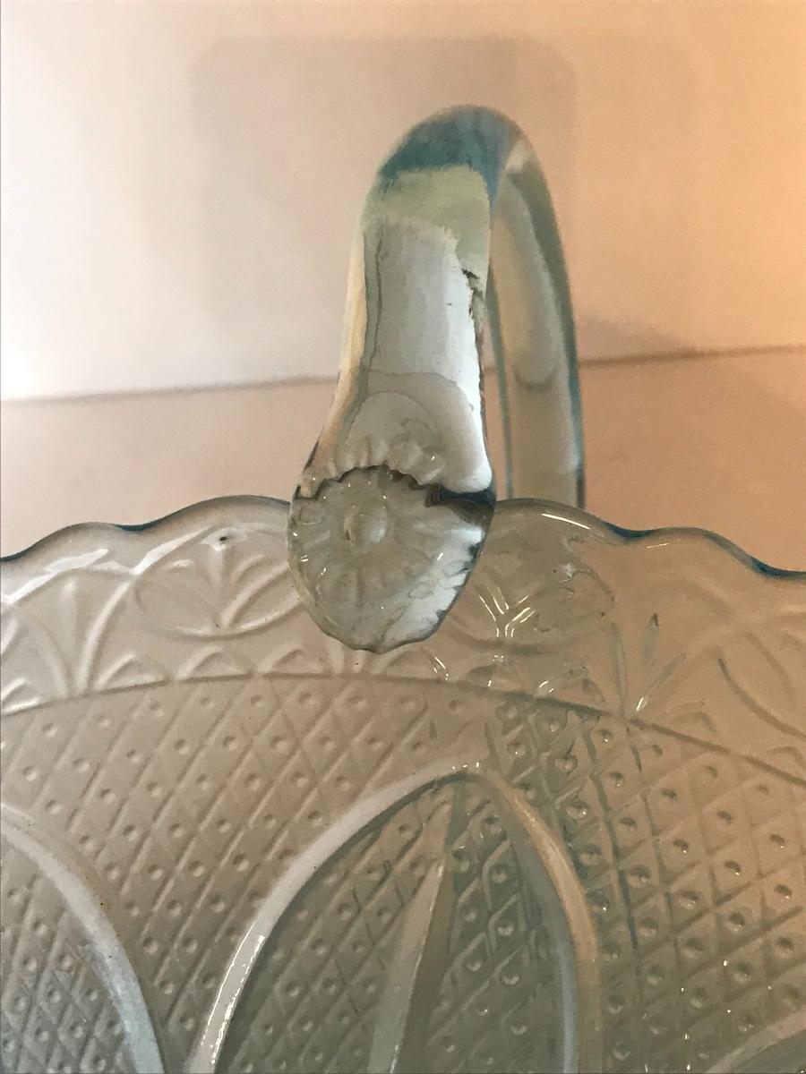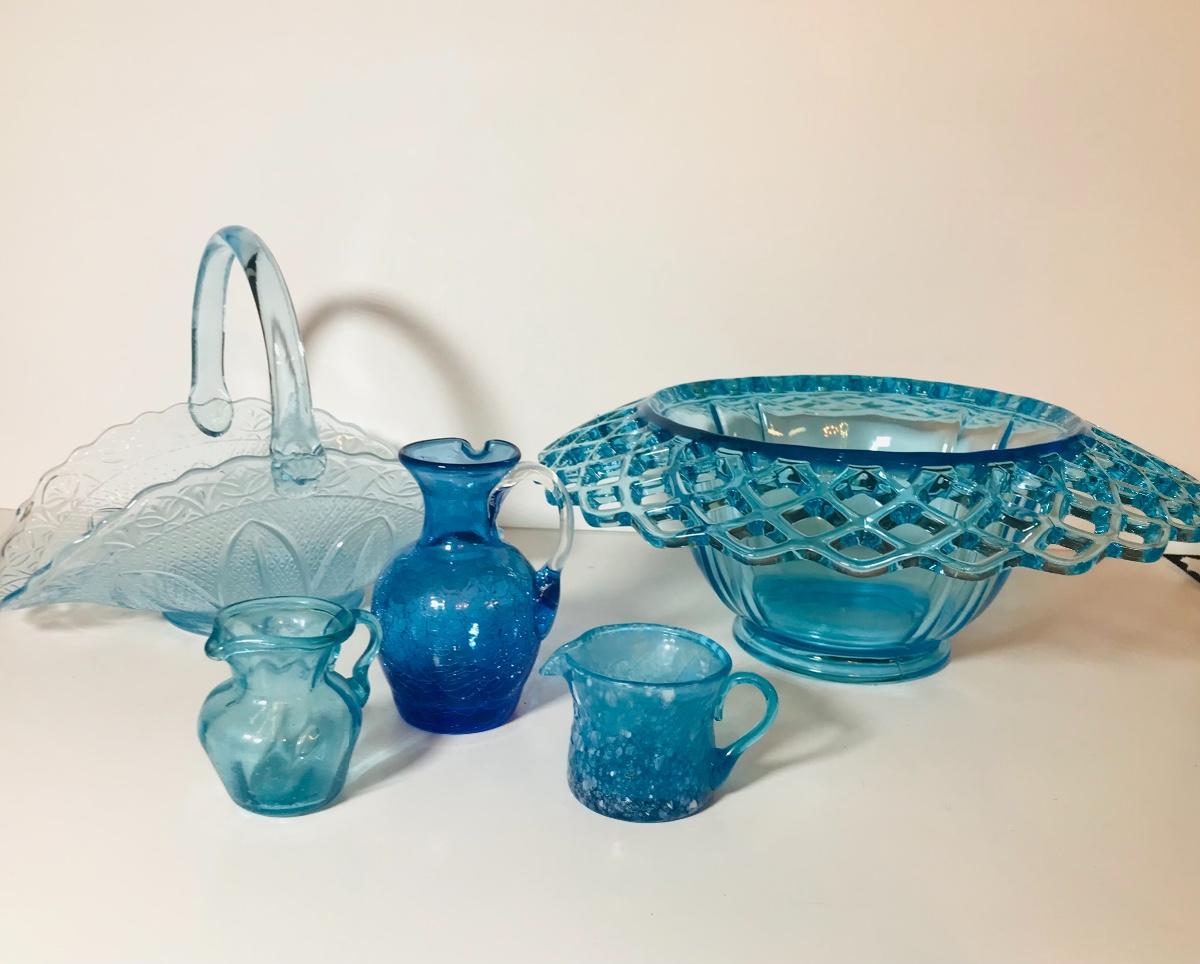 Crackle glass, hand blown pitchers, bowl with lattice rim, and a pressed glass basket. Please see all pictures as they are the best representation of the items. The pictures show condition, measurements if taken, and what is included in the lot. Due to the large amount that we photograph and the time frame, we are not always able to take measurements. All items unless noted, are pre-owned and have been used. If you purchased furniture, you must bring help. We do not allow one person to carry large furniture out on their own. Bring help, tools and a truck for the safety of our client’s homes, and your personal safety. Company policy. Thank you.