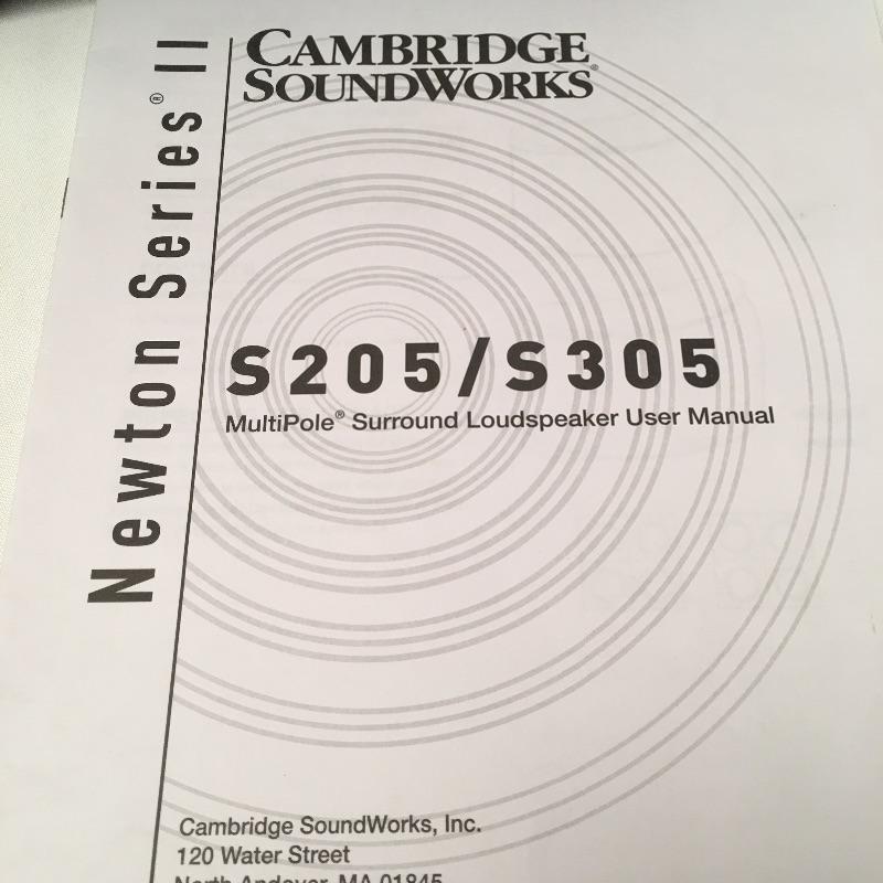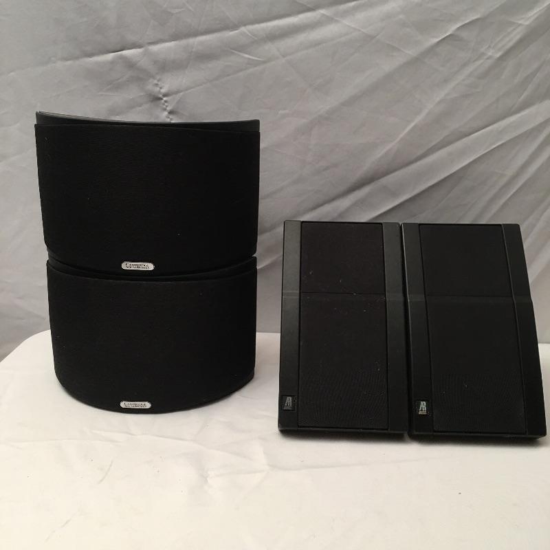 Cambridge Soundworks S305 surround loudspeakers and a pair of Acoustic Research bookshelf speakers. Speakers appear to be in good shape, but were not tested. Be ready to rock with these nice speakers.