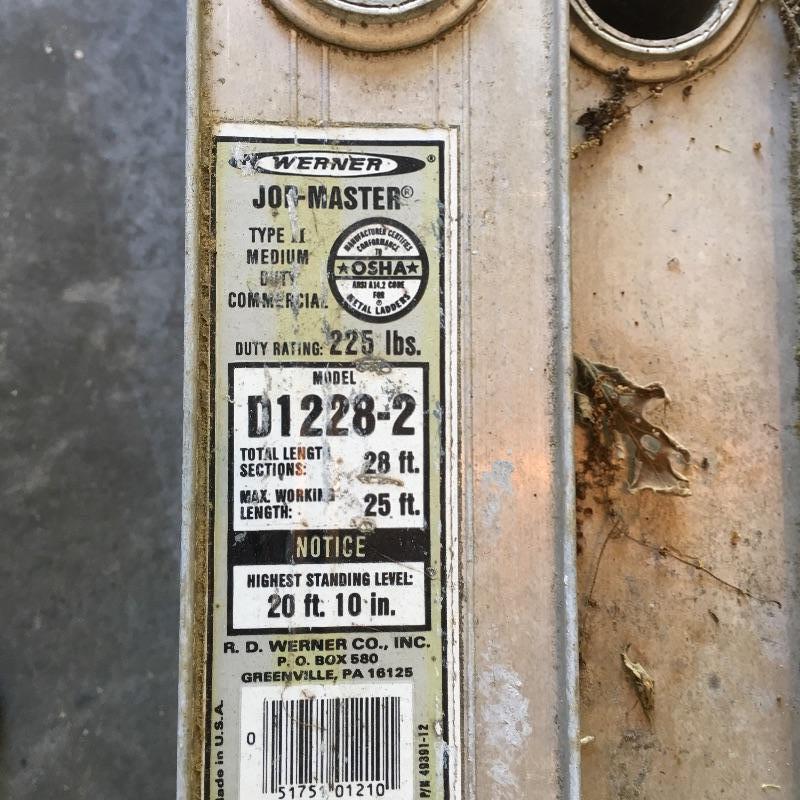 Twenty eight foot Werner aluminum extension ladder.