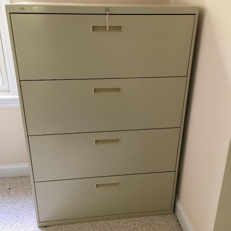 Four drawer locking file cabinet. Great for the office or home office. Cabinet measures 19” x 36” 52.75”.