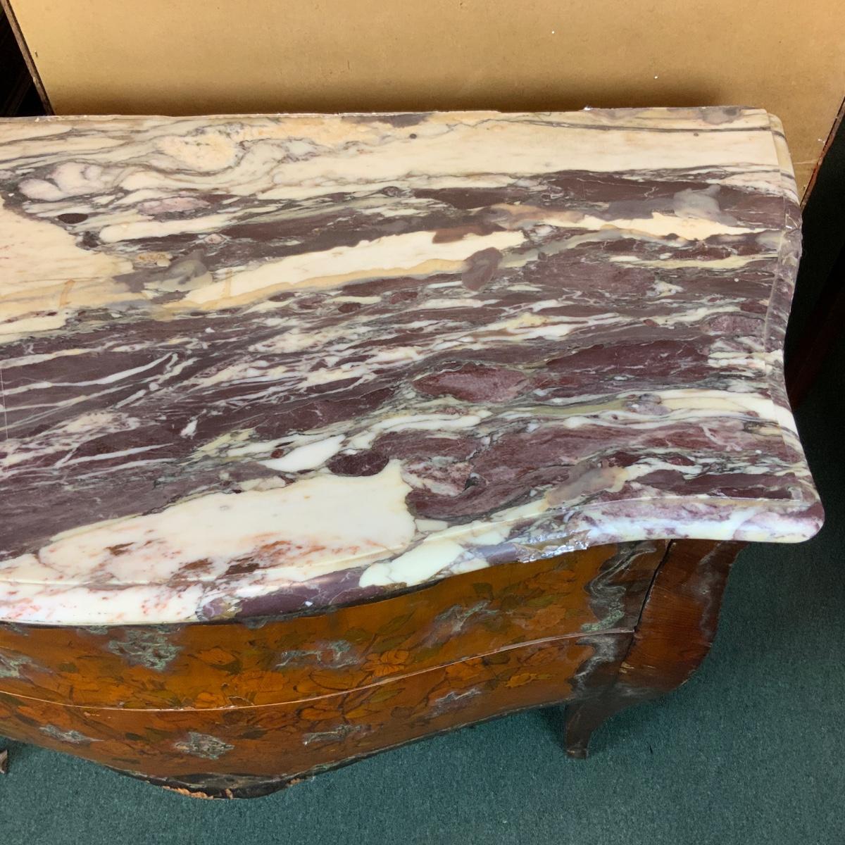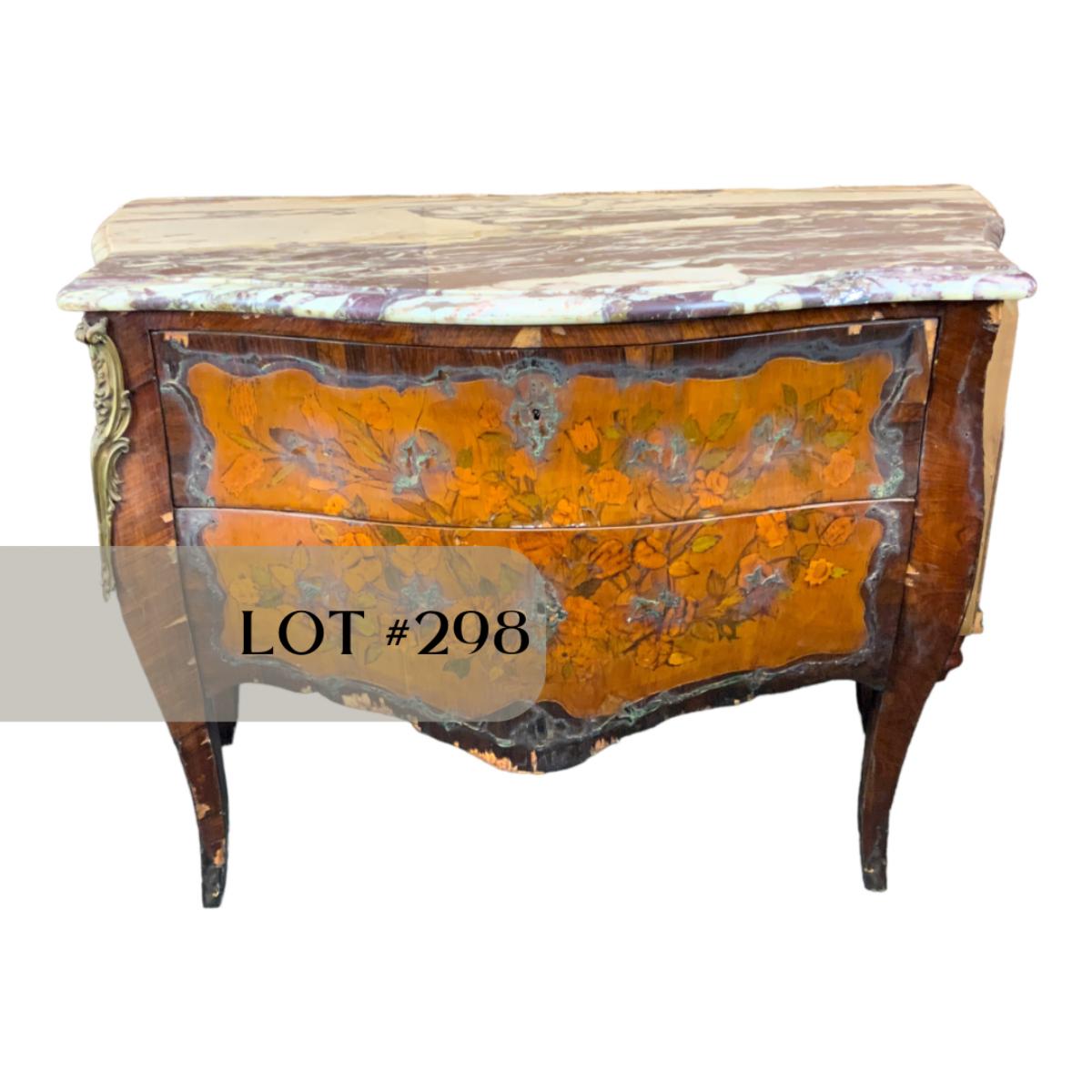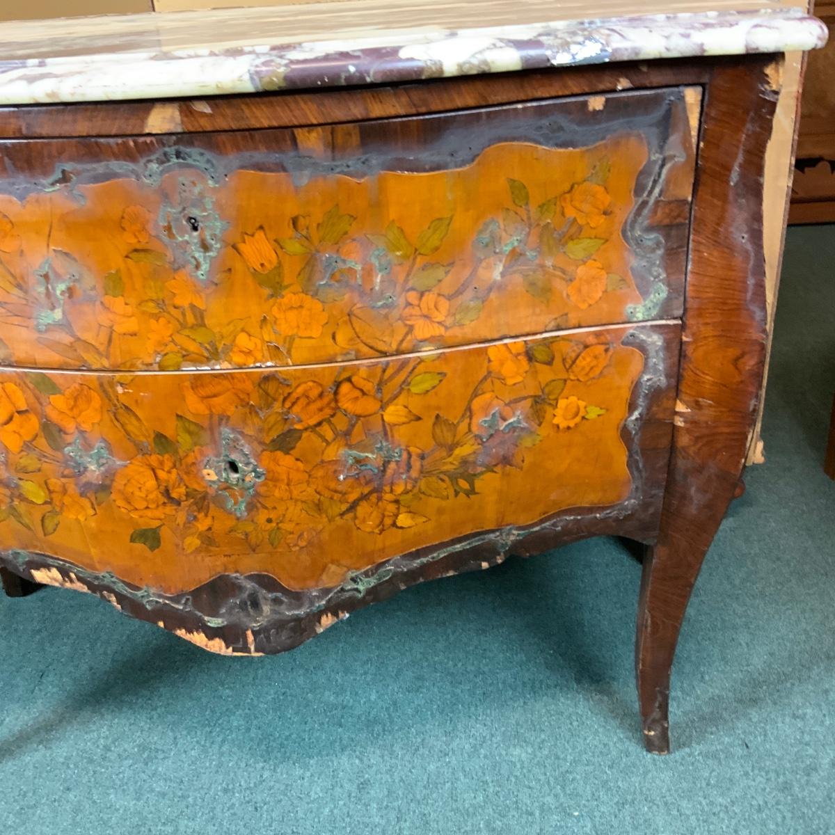 Marble-Top Bombay Commode. Has original Hardware that has been removed while starting the restoration process. Marble on the top is cracked. //::\\ Please see photos for details and condition. No attempt has been made to hide any imperfections. All items listed in this auction are warehouse items, and need to be cleaned. A majority of the items need restoration as well. All items are sold AS IS and WITHOUT GUARANTEE. If you are uncertain about an item, DO NOT BID. Due to the nature of this online auction in-person inspection is HIGHLY recommended. All Sales are FINAL. Pick Up Times are FIRM. Please confirm with your own schedule that you can pick up in the scheduled times listed in the Terms and Conditions. Any questions please message the auctioneer. DO NOT Contact The Harp Gallery.