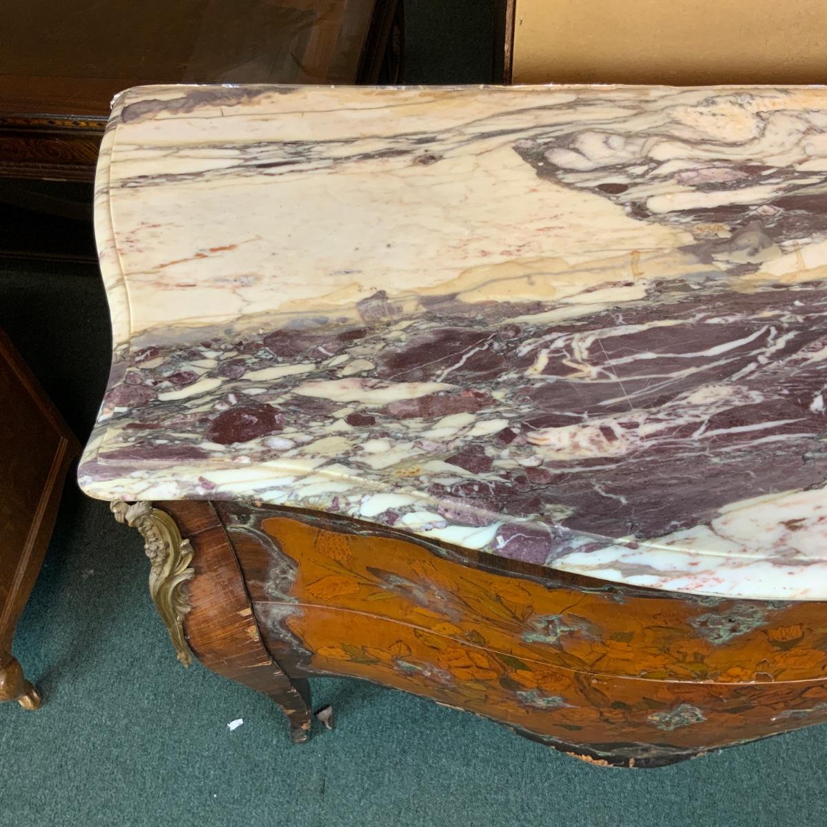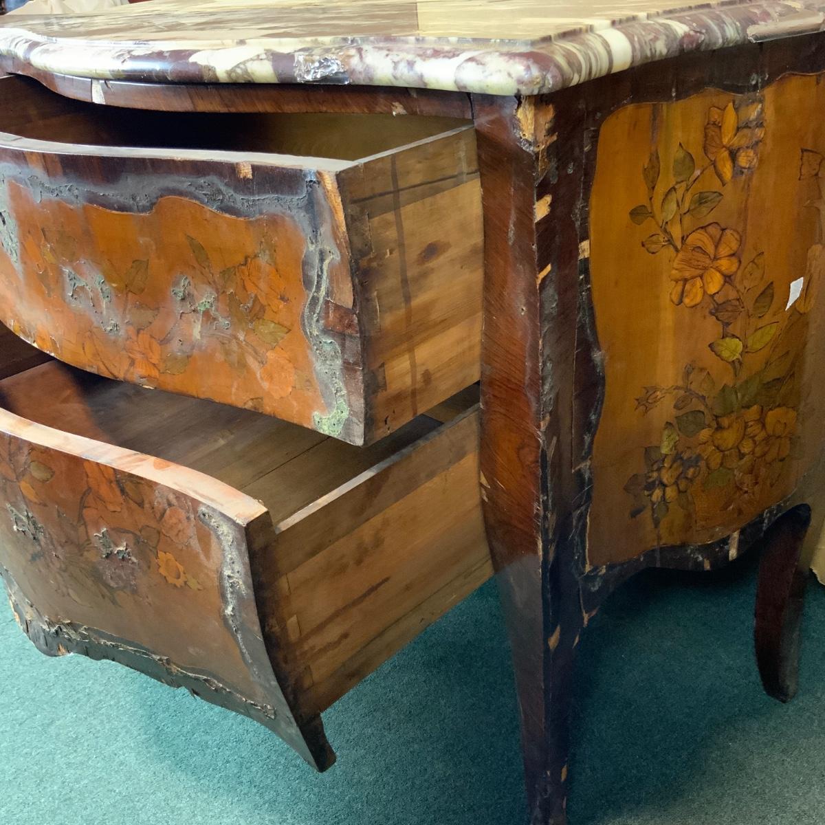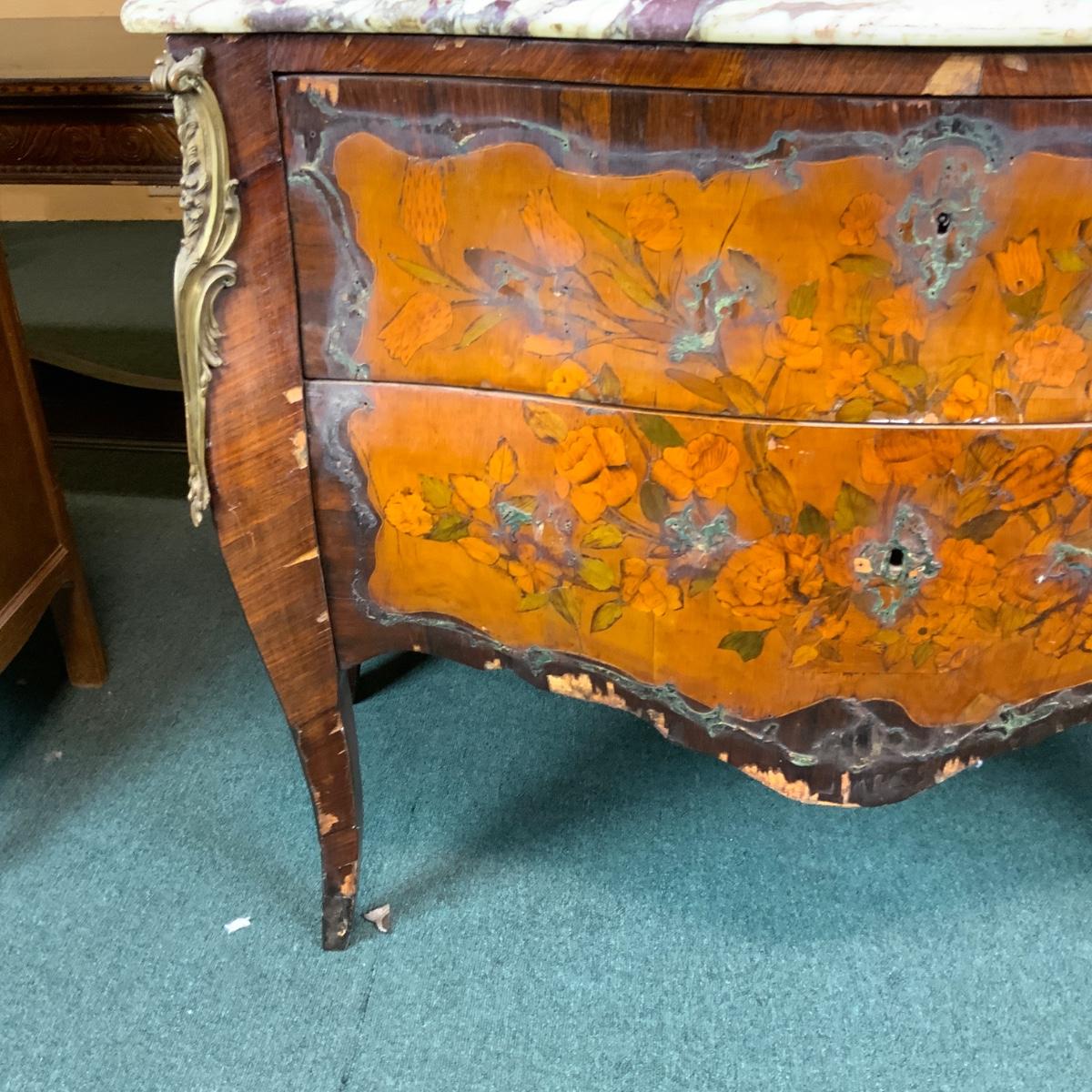 Marble-Top Bombay Commode. Has original Hardware that has been removed while starting the restoration process. Marble on the top is cracked. //::\\ Please see photos for details and condition. No attempt has been made to hide any imperfections. All items listed in this auction are warehouse items, and need to be cleaned. A majority of the items need restoration as well. All items are sold AS IS and WITHOUT GUARANTEE. If you are uncertain about an item, DO NOT BID. Due to the nature of this online auction in-person inspection is HIGHLY recommended. All Sales are FINAL. Pick Up Times are FIRM. Please confirm with your own schedule that you can pick up in the scheduled times listed in the Terms and Conditions. Any questions please message the auctioneer. DO NOT Contact The Harp Gallery.
