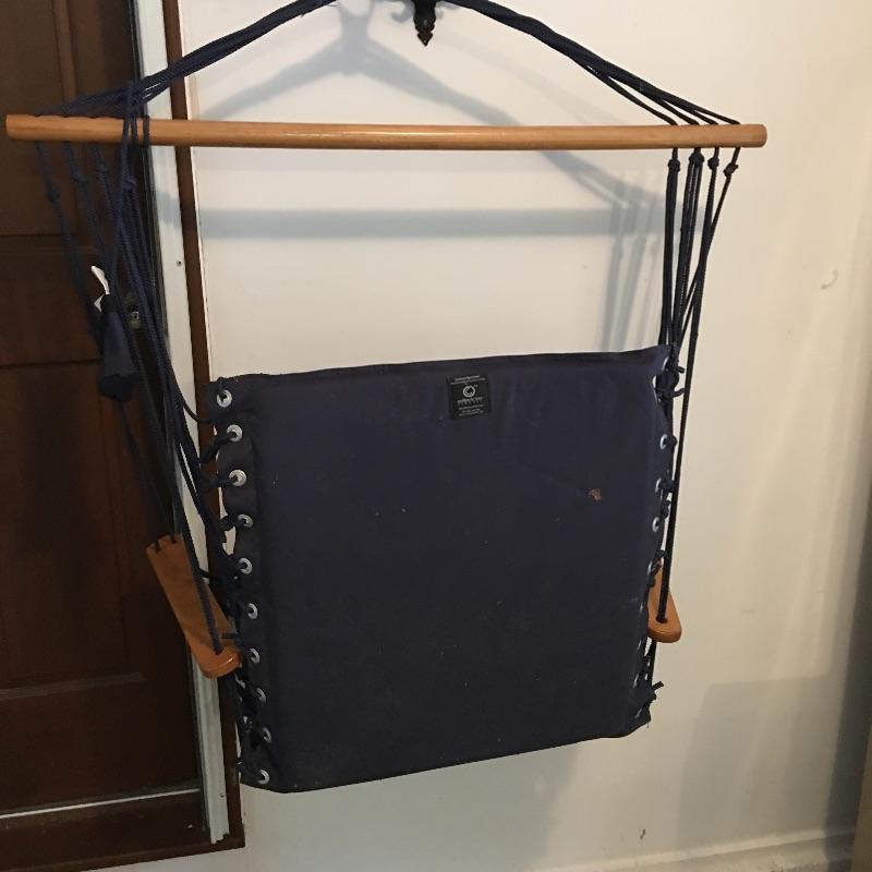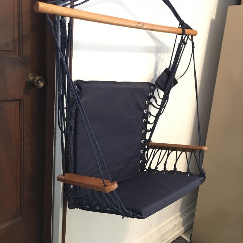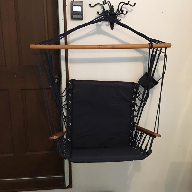 Relax and enjoy yourself with this Outback Chair Company hanging recliner with cushioned backrest and seat and built in cup holder. Folding wire side table also included. Chair measures 20” x 40” x 43”.