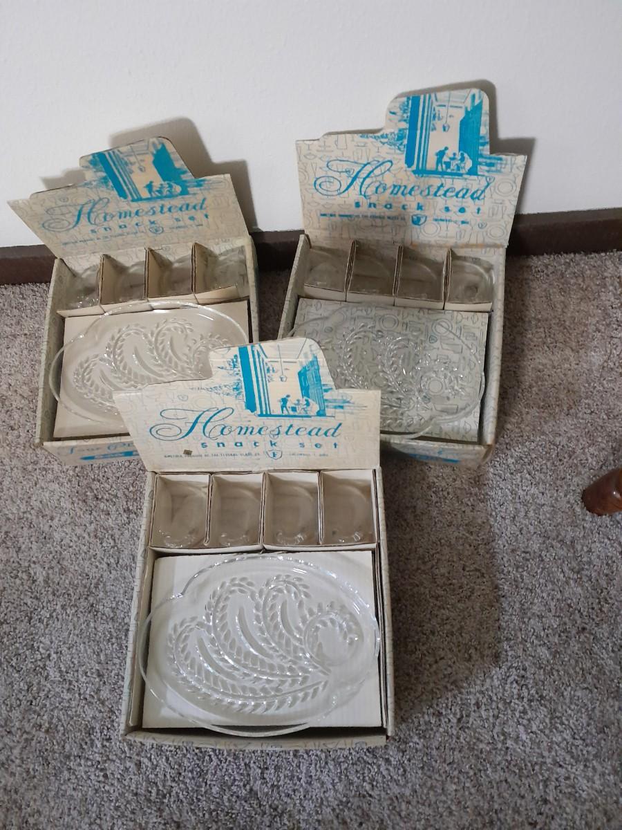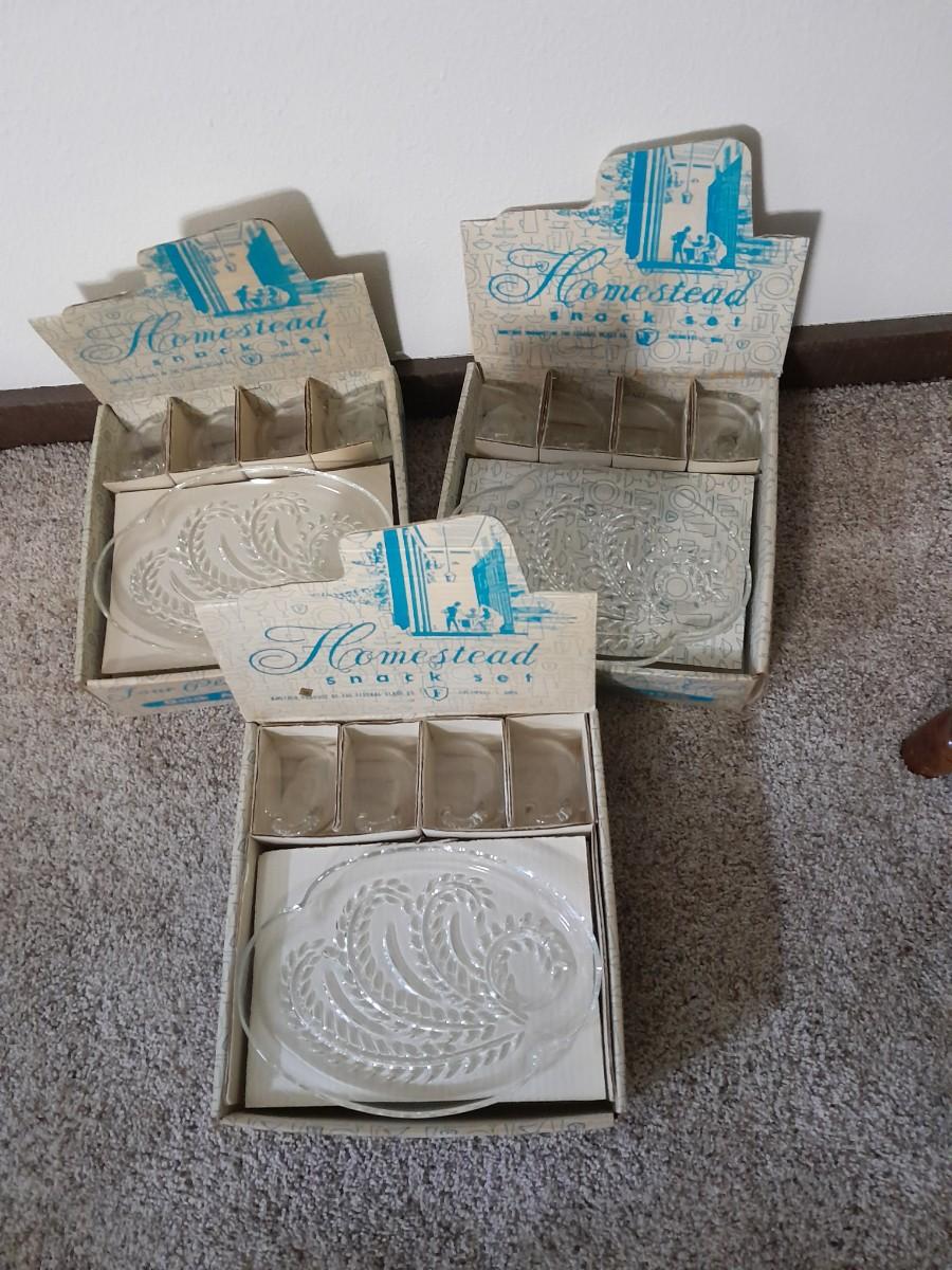 THREE VINTAGE HOMESTEAD SNACK SETS WITH ORIGINAL BOXES