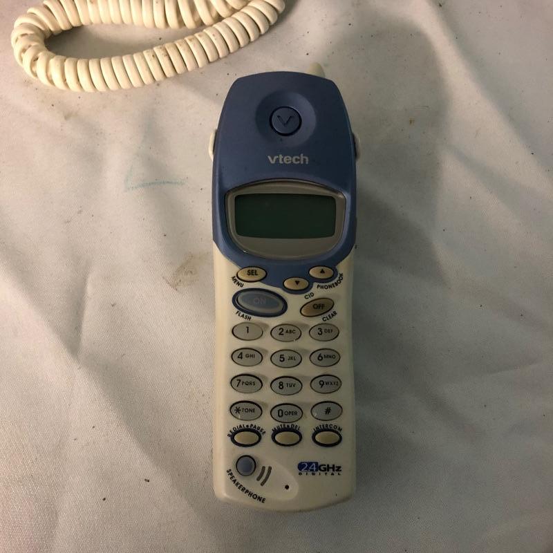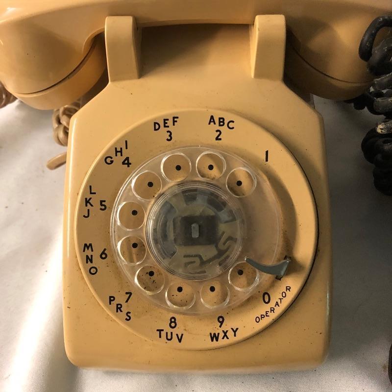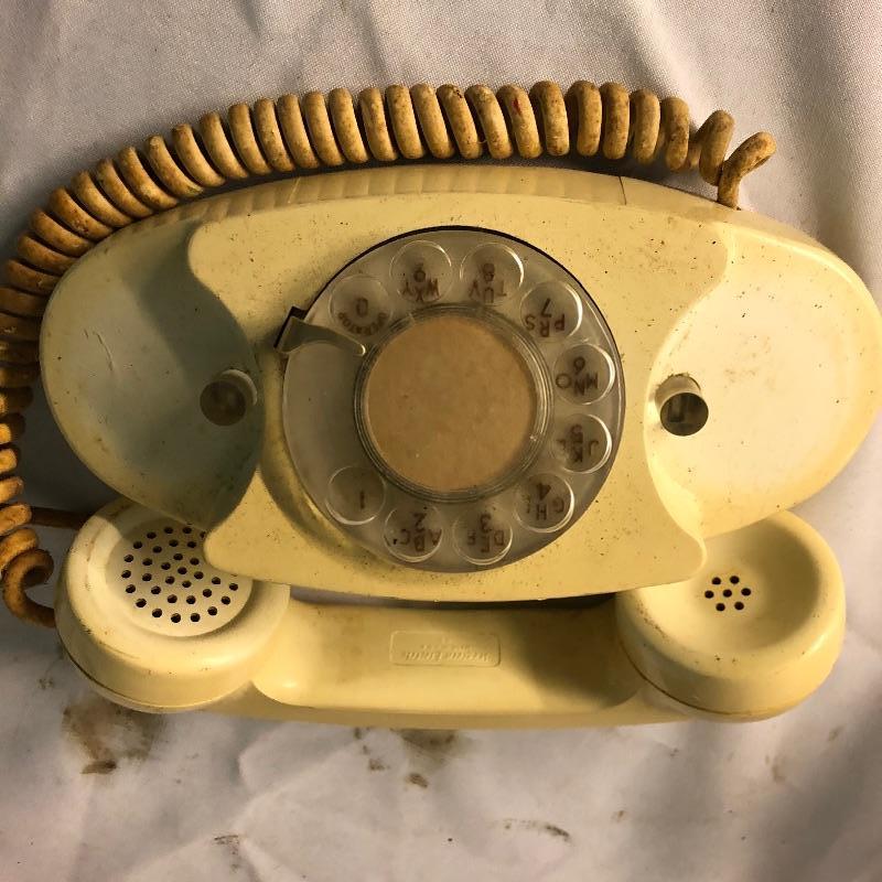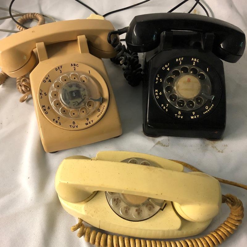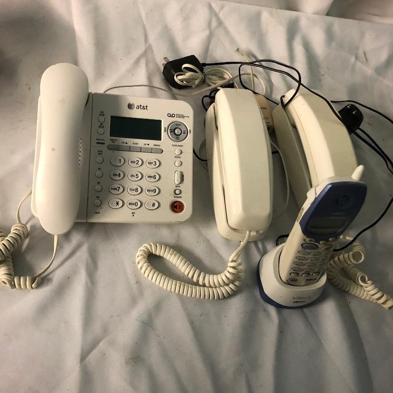 It’s not every day you come across a tan phone! There are three vintage phones here. The Black and Tan phones are made by Western Electric. The third old school phone is a ivory colored Princess phone that shows some age discoloring. We have added four modern phones to this lot that includes one cordless and one with a built in answering machine.