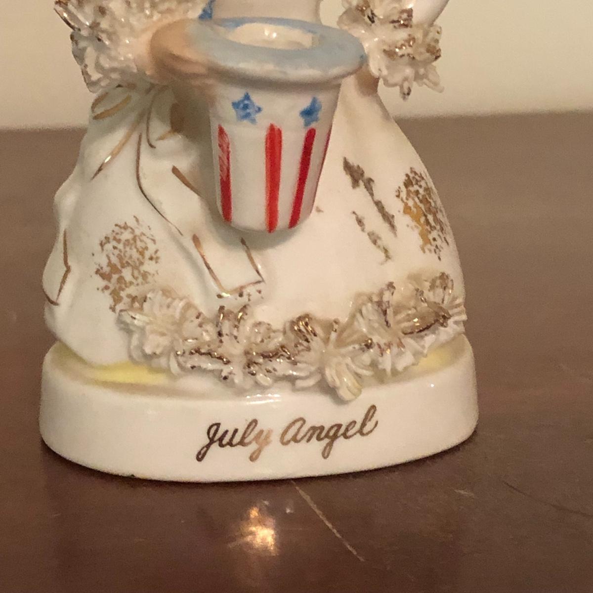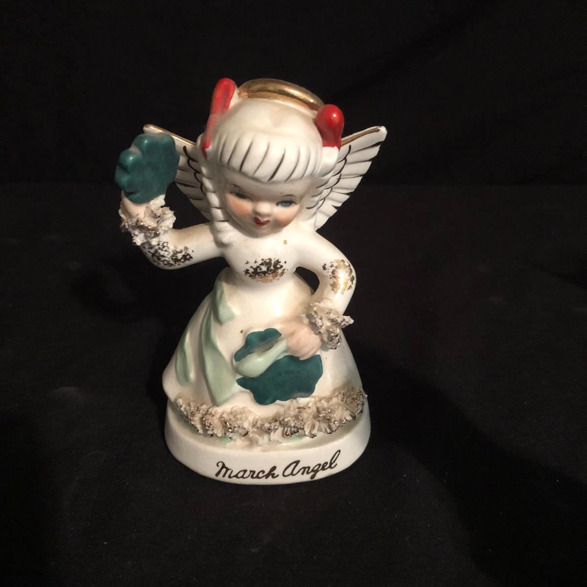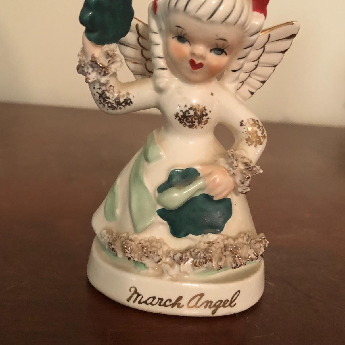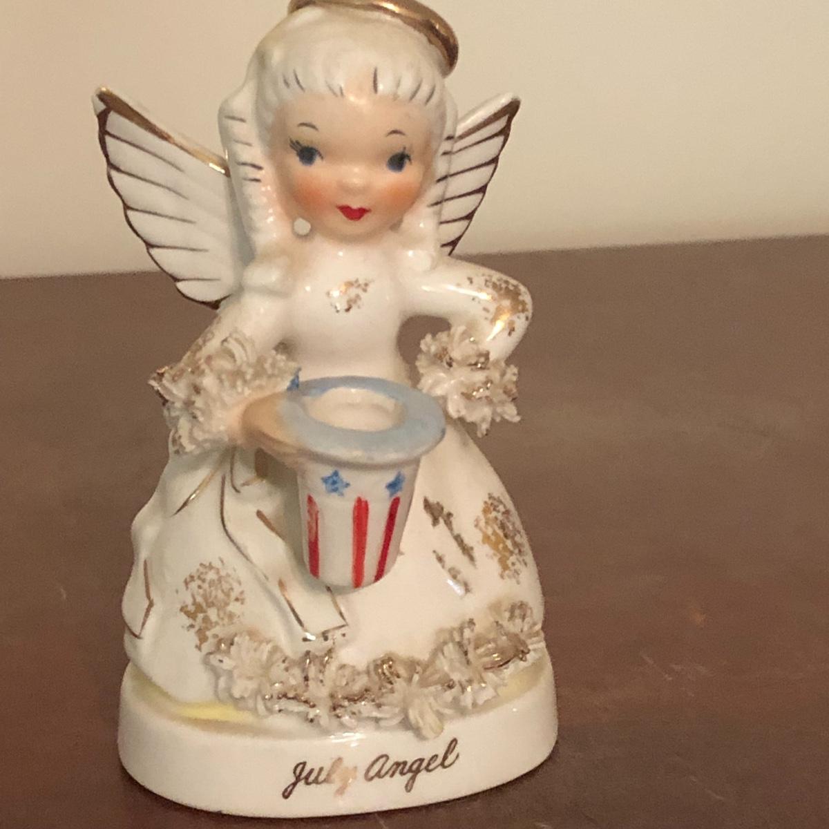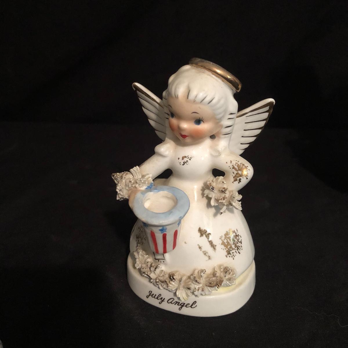 Celebrate three months of the year with these vintage angels: March, July and August. They all are about 4” tall. The fourth angel is a Seraphim Classic standing 7” tall. Shipping Available.