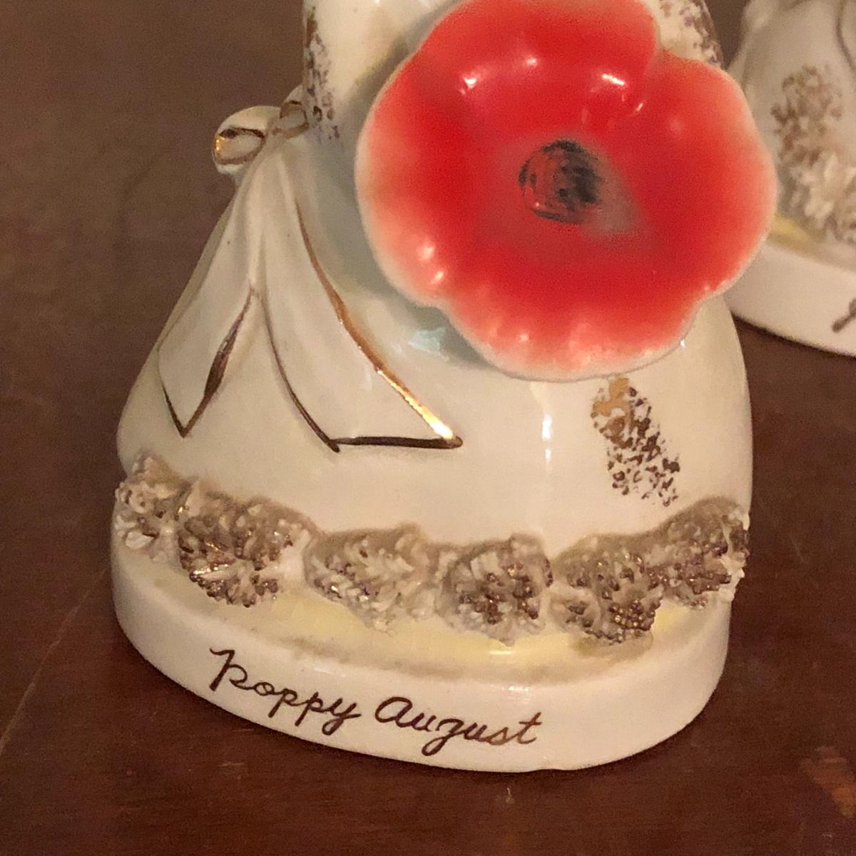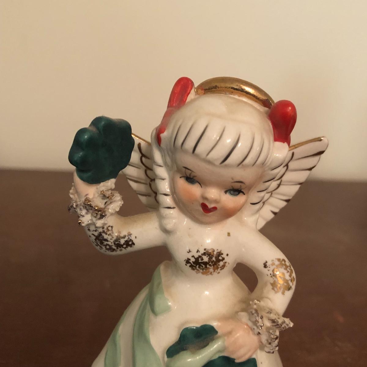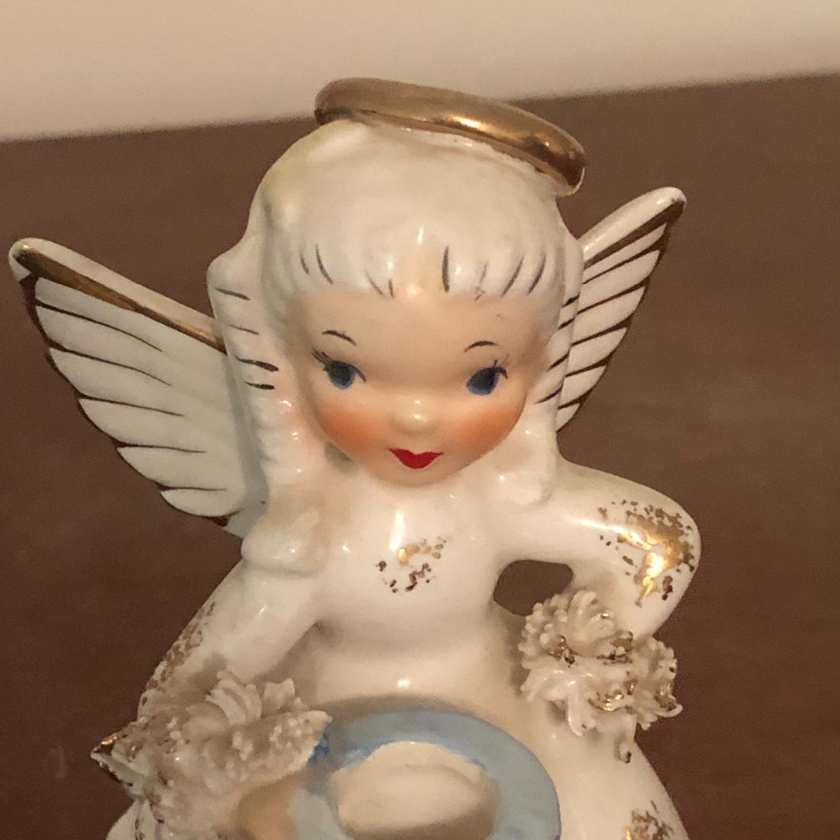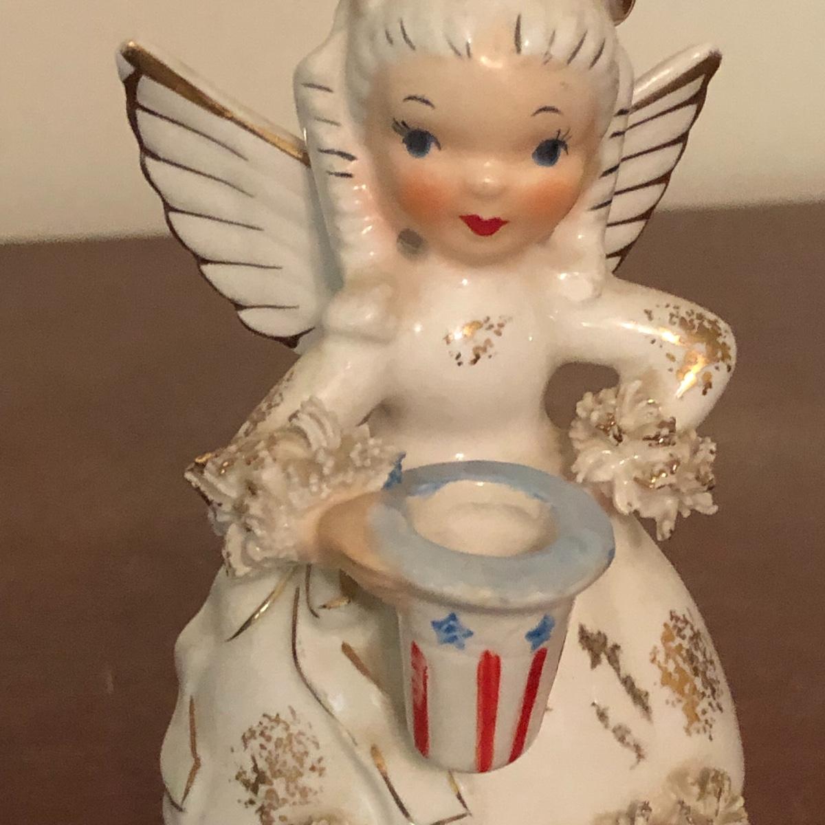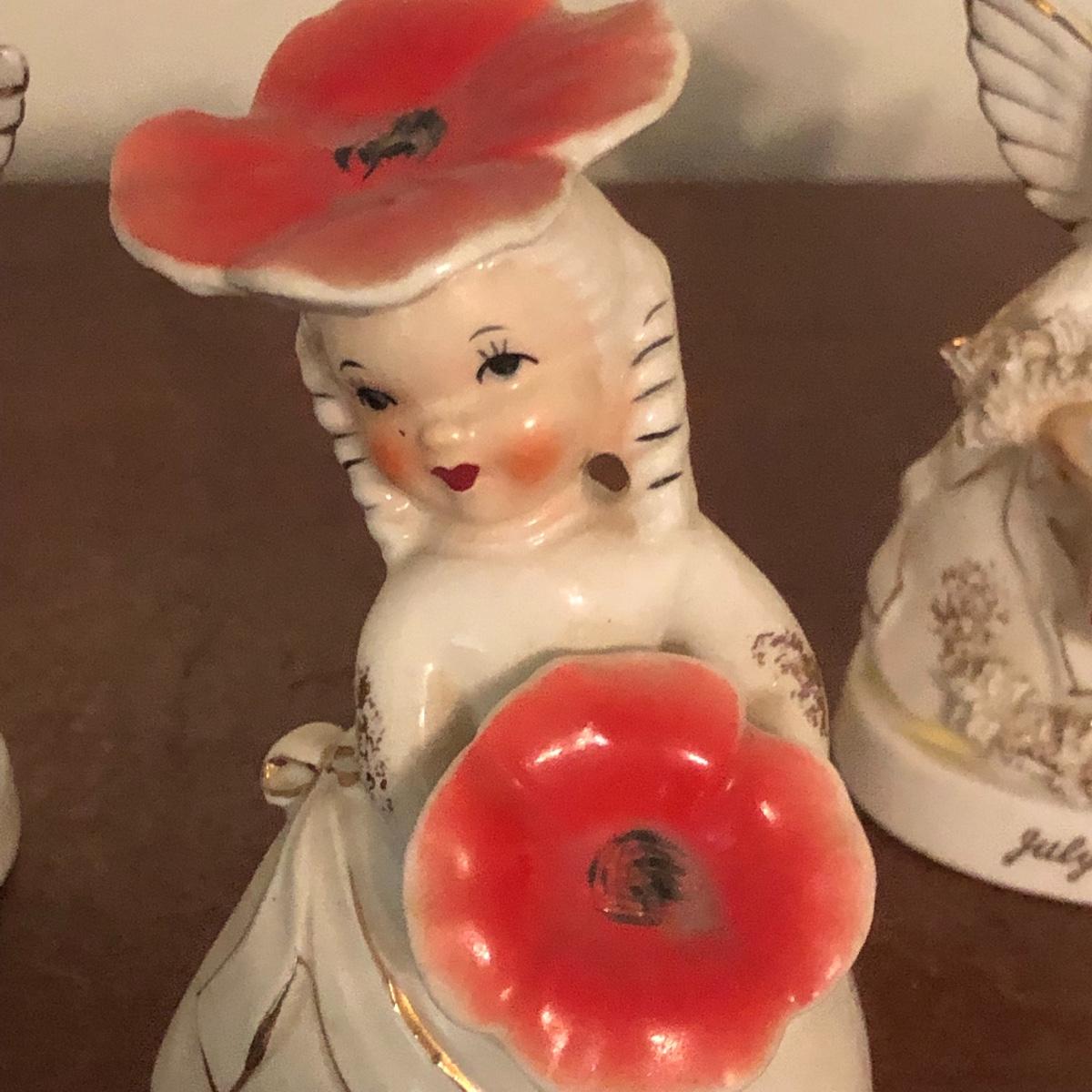 Celebrate three months of the year with these vintage angels: March, July and August. They all are about 4” tall. The fourth angel is a Seraphim Classic standing 7” tall. Shipping Available.