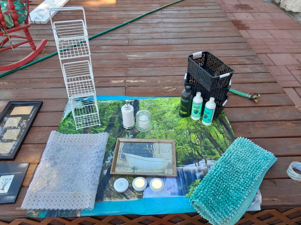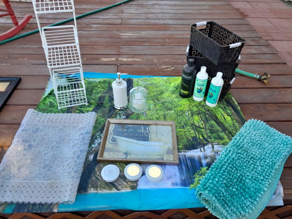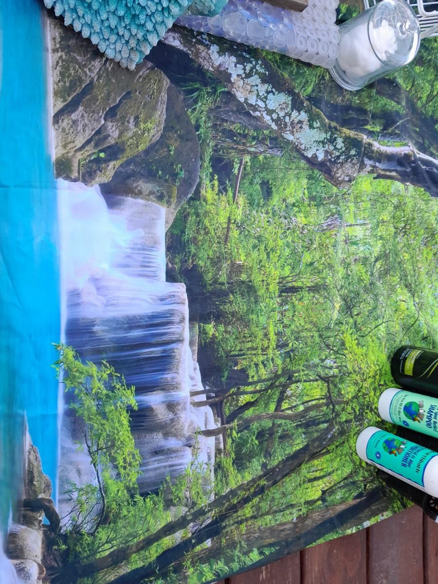 WOODS AND WATERFALL TAPESTRY, TOILETRY ITEMS, AND ORGANIZATION