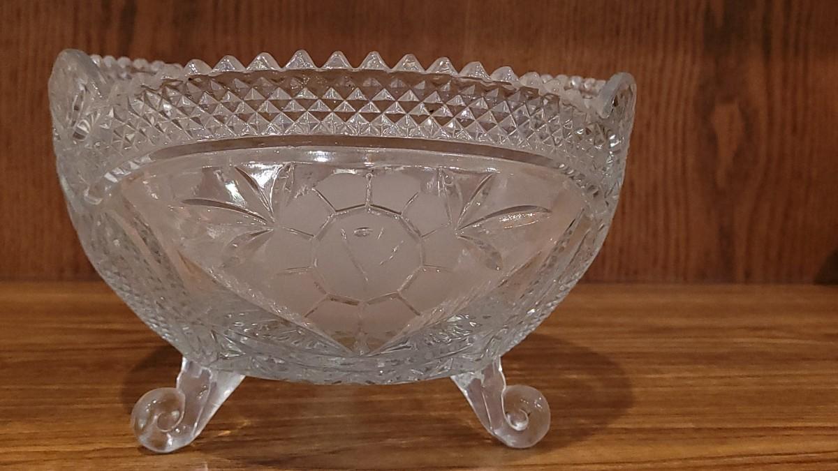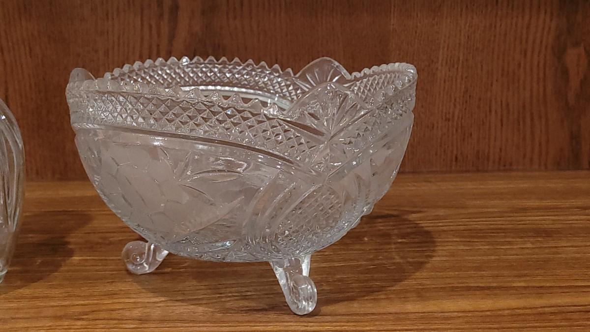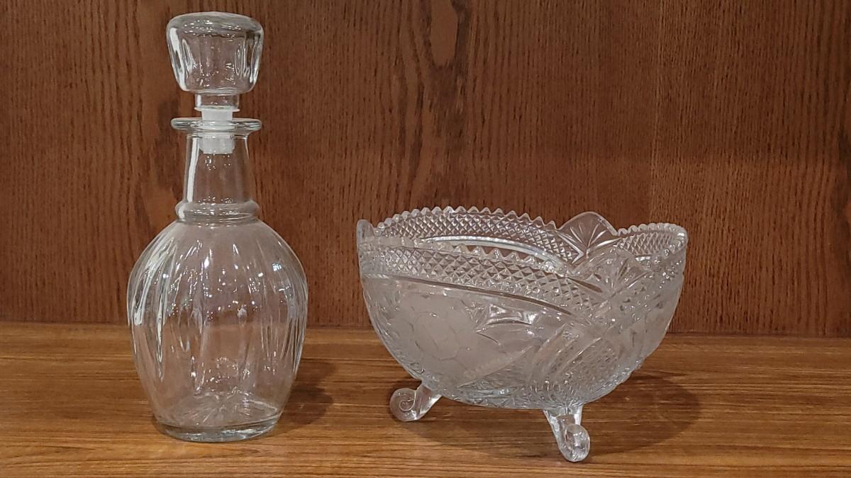 Lot 299: Vintage Cut Glass Decanter and Footed Bowl