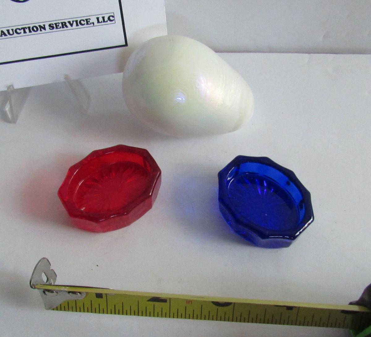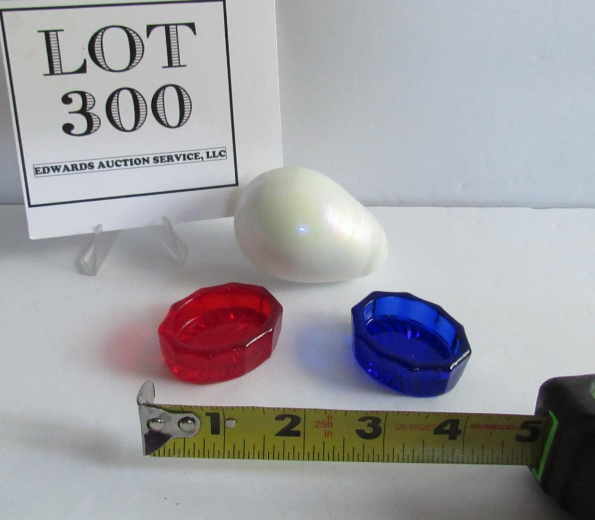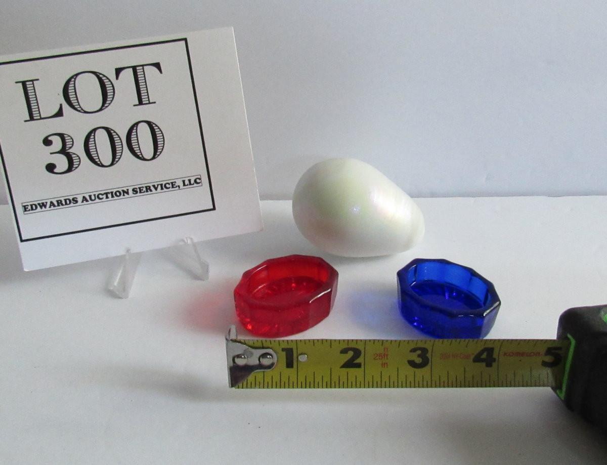 Lot 300: 2 Glass Open Salt Dips and Gibson Glass Egg