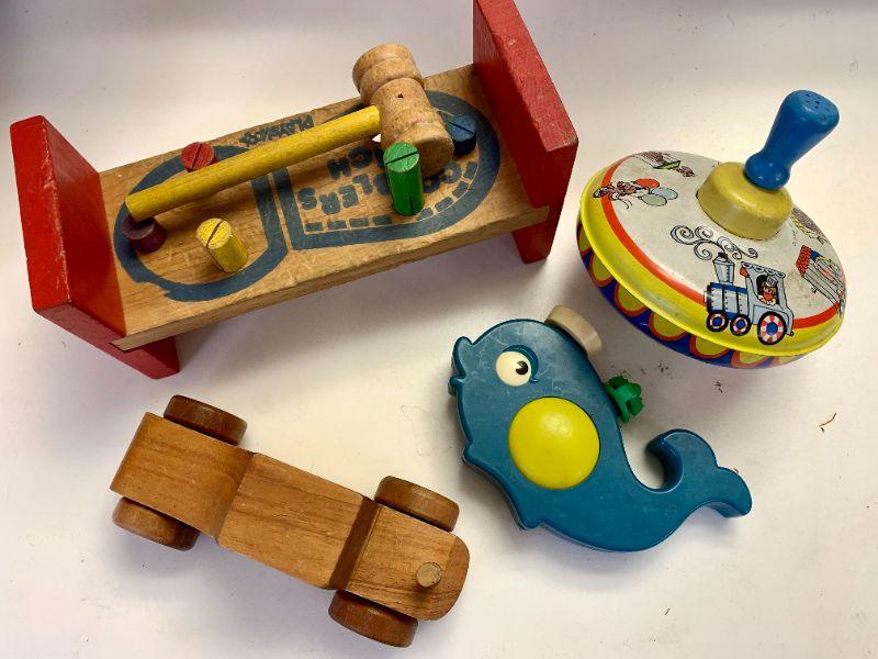 LOT 299 GROUP OF VINTAGE BABY TOYS PLAYSCHOOL * TOP *WOOD CAR