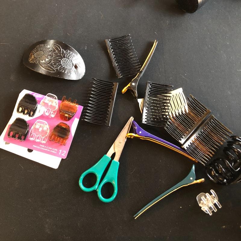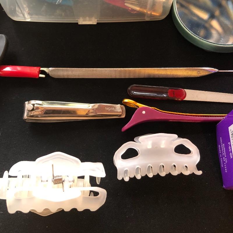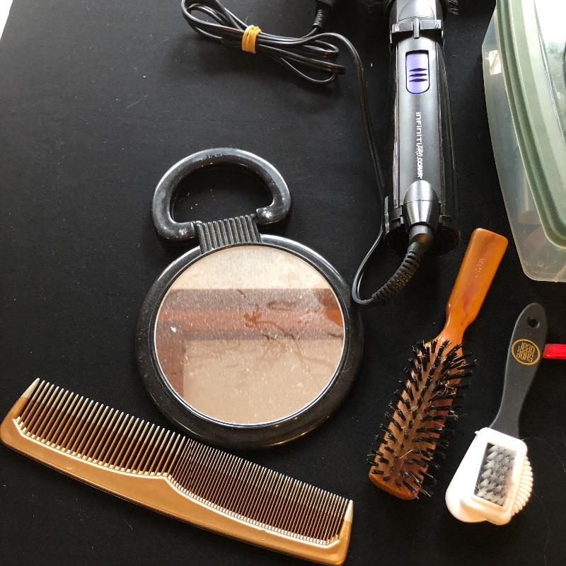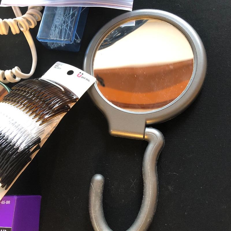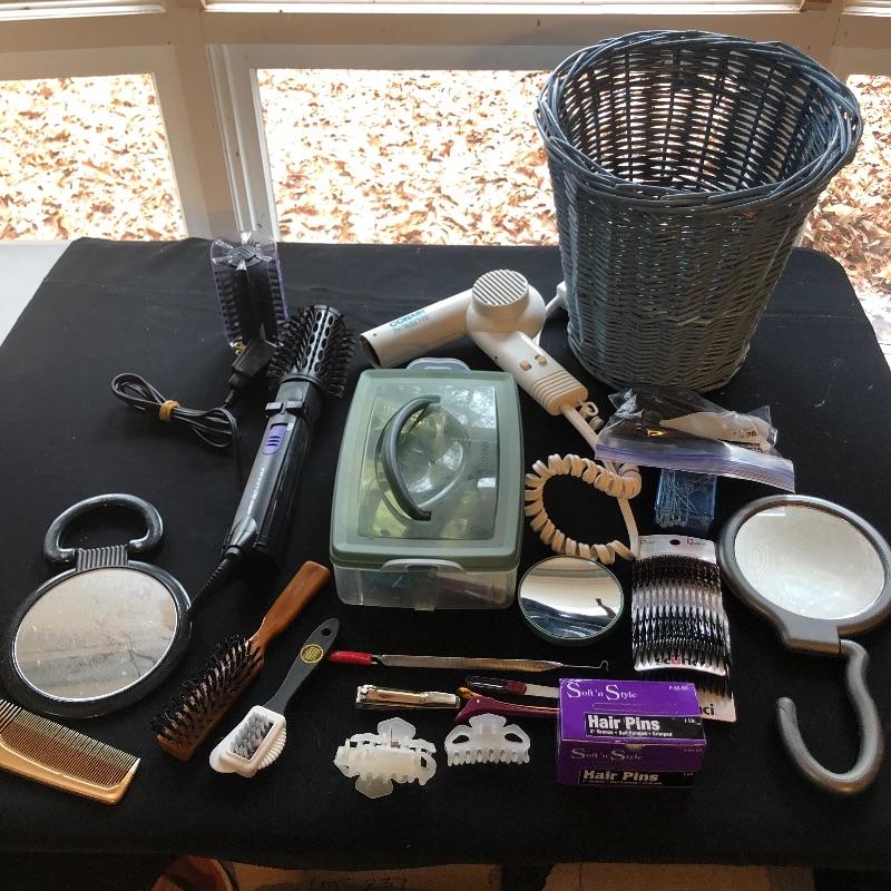 A great lot for hair care here that includes a hairdryer, Infiniti Conair styling brush, assortment of mirrors, hair clips and more. Hairdryer was tested, brush was not tested.