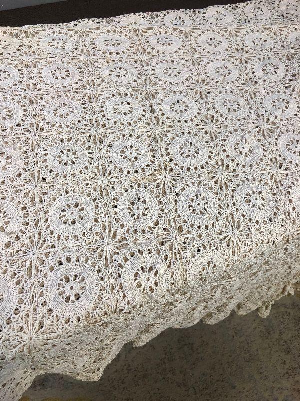 Lot #299 Hand Crocheted Coverlet or tablecloth