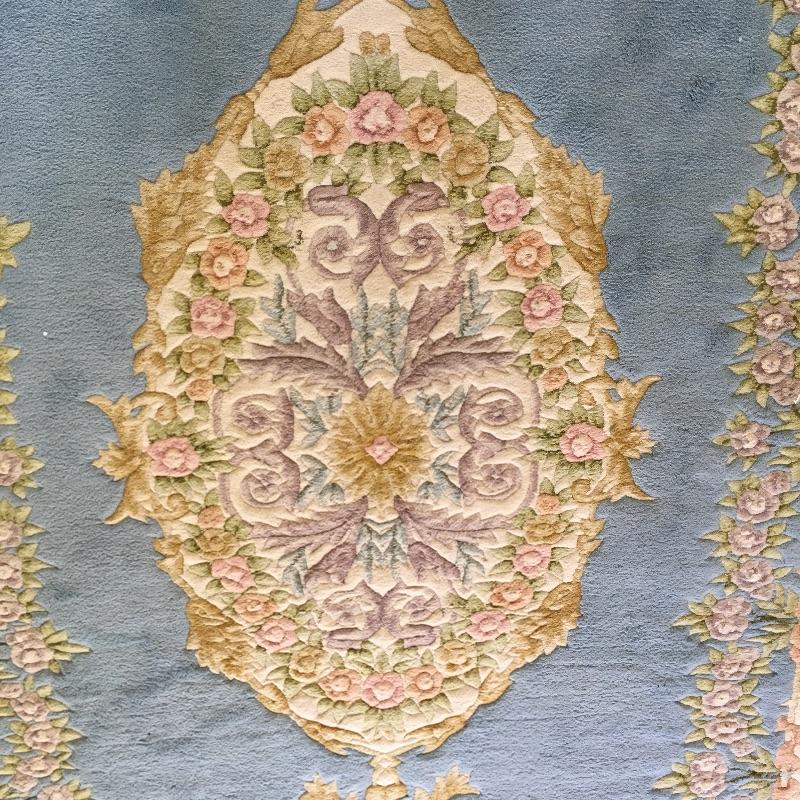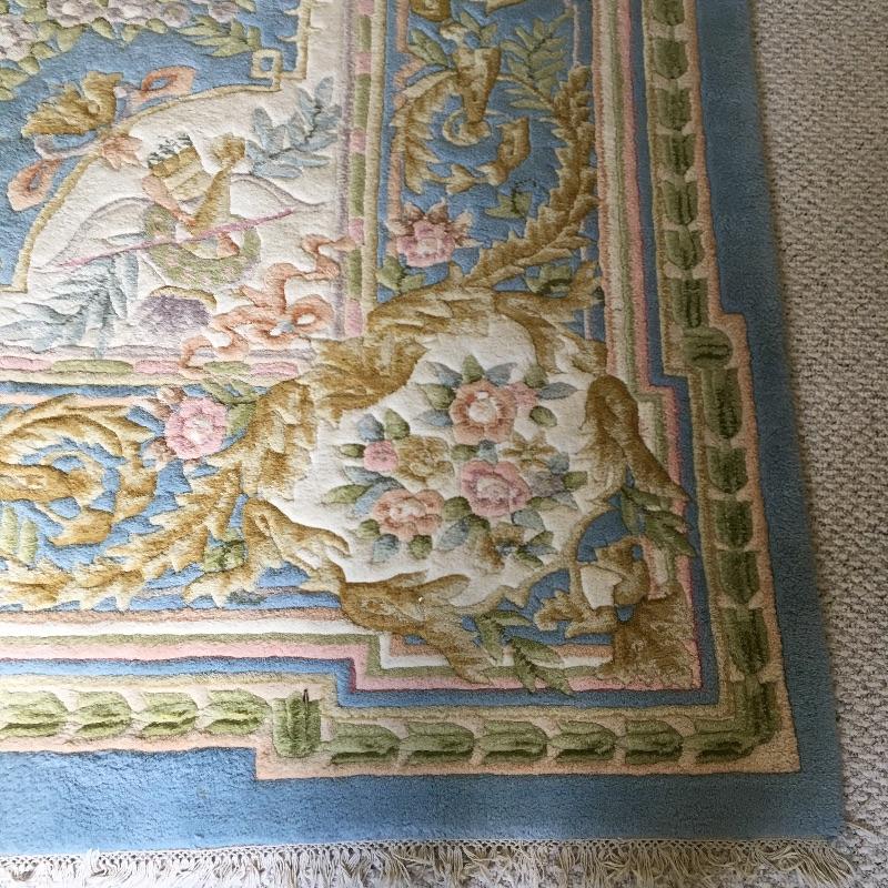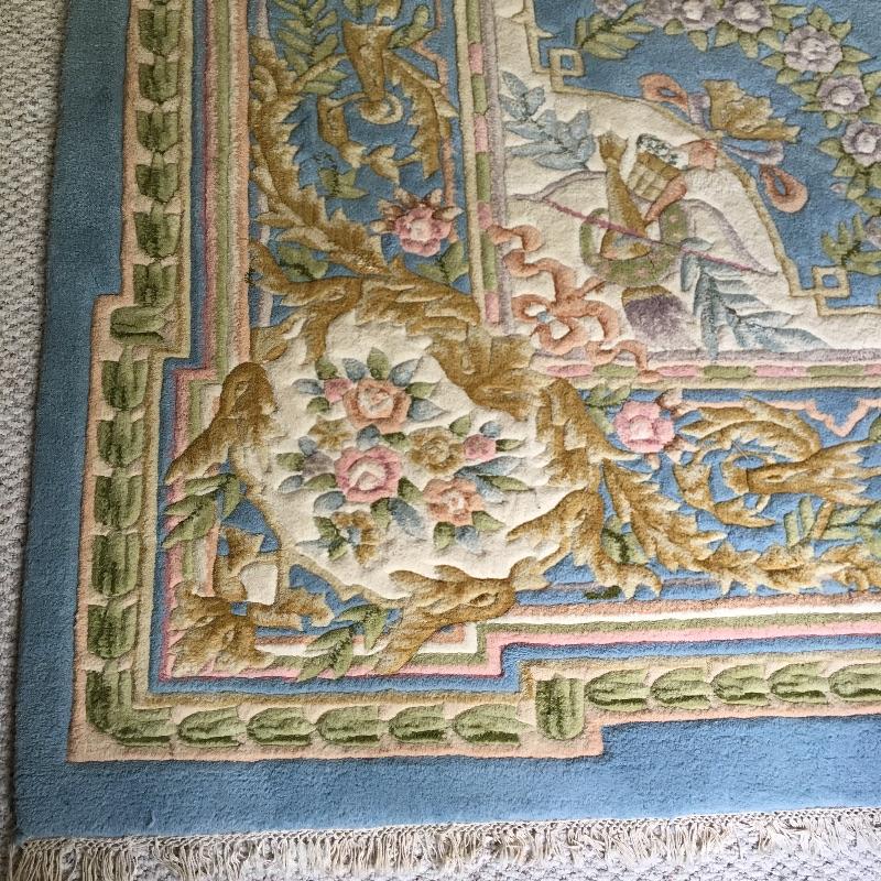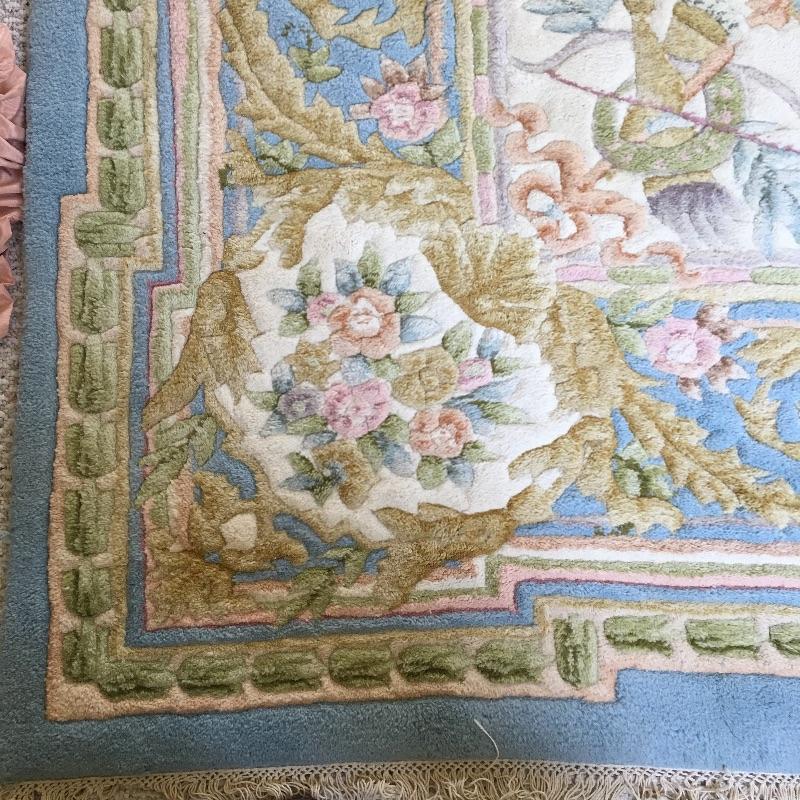 This large hand woven 100% wool pile oriental rug is stunning. Made in India it has the prettiest of colors, it will add elegance and charm to your room.