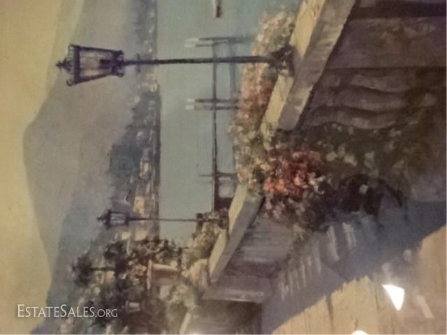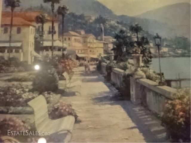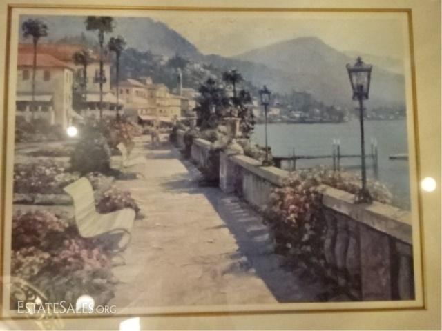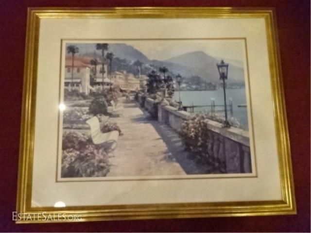 LOT 29A: HOWARD BEHRENS LITHOGRAPH, ITALIAN COASTAL SCENE TITLED BELLAGIO PROMENADE, SIGNED IN THE PLATE LOWER RIGHT, FRAMED AND MATTED, VERY GOOD CONDITION, FRAMED SIZE 43" X 35", SKU332