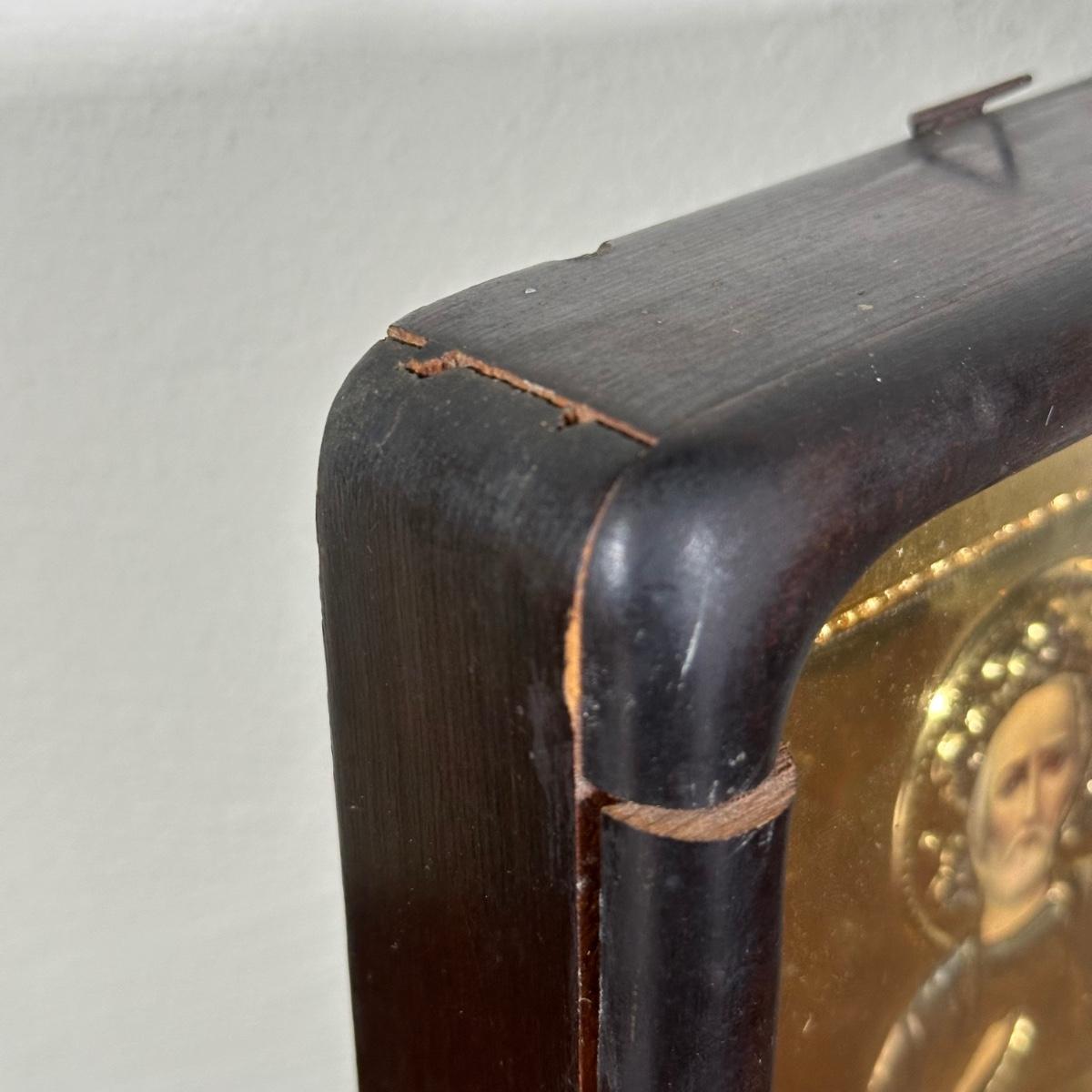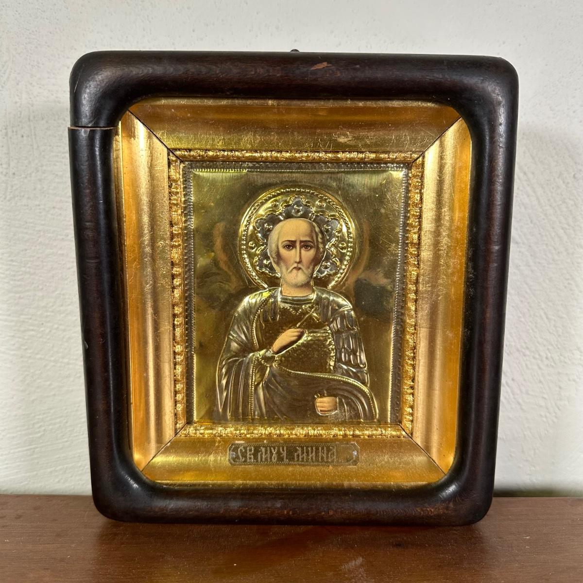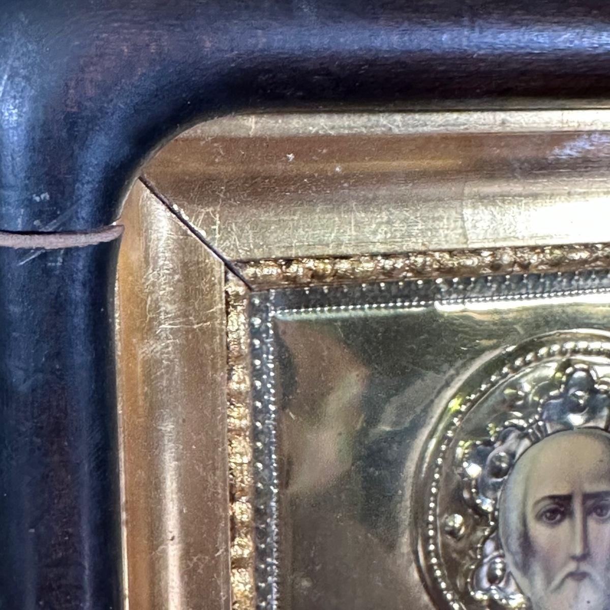 LOT 29B: Antique Russian Orthodox Icon Saint Nicholas Brass/Gilt