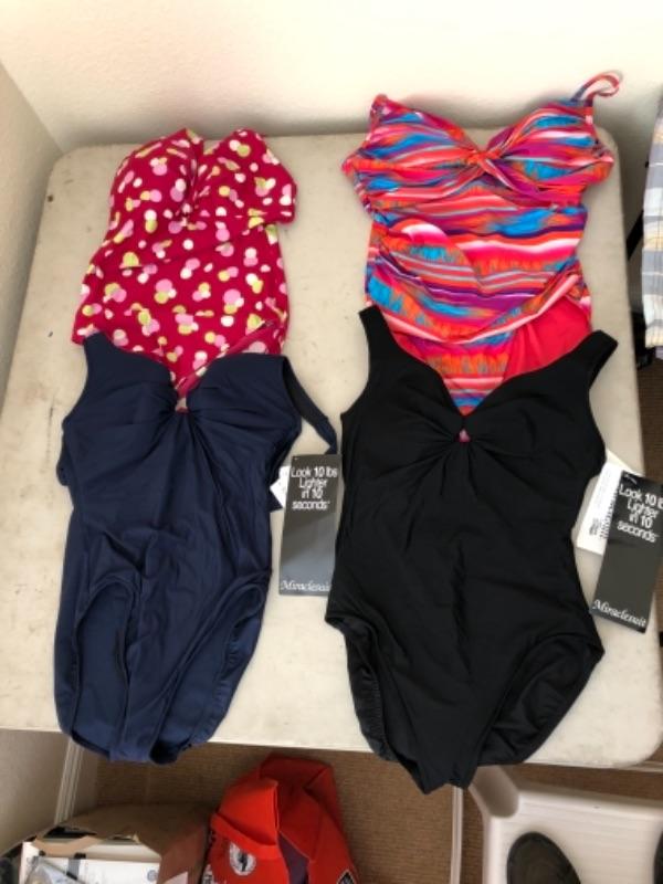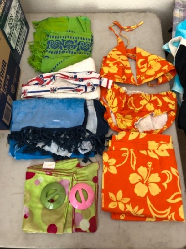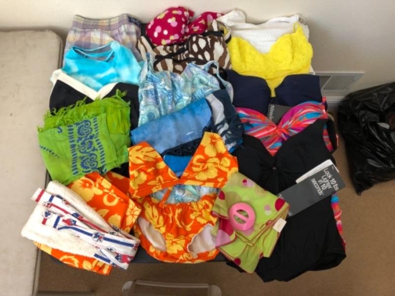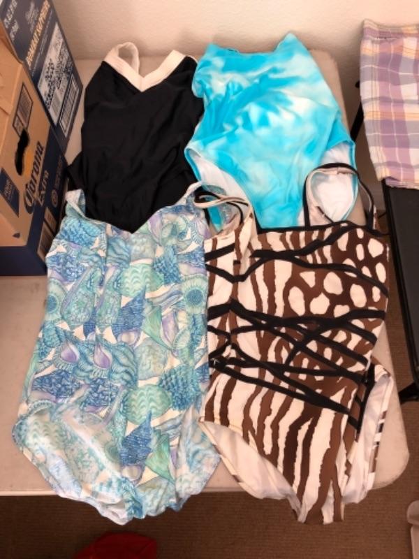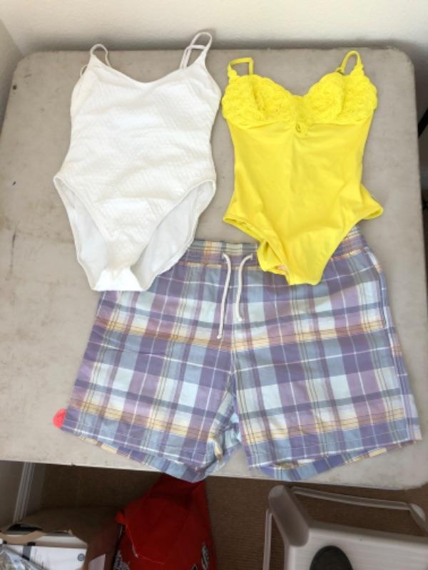 Lot 29U. Lot of bathing suits (woman’s size 16); 2 pairs of men’s shorts; vintage women’s Hawaiian suit--$65